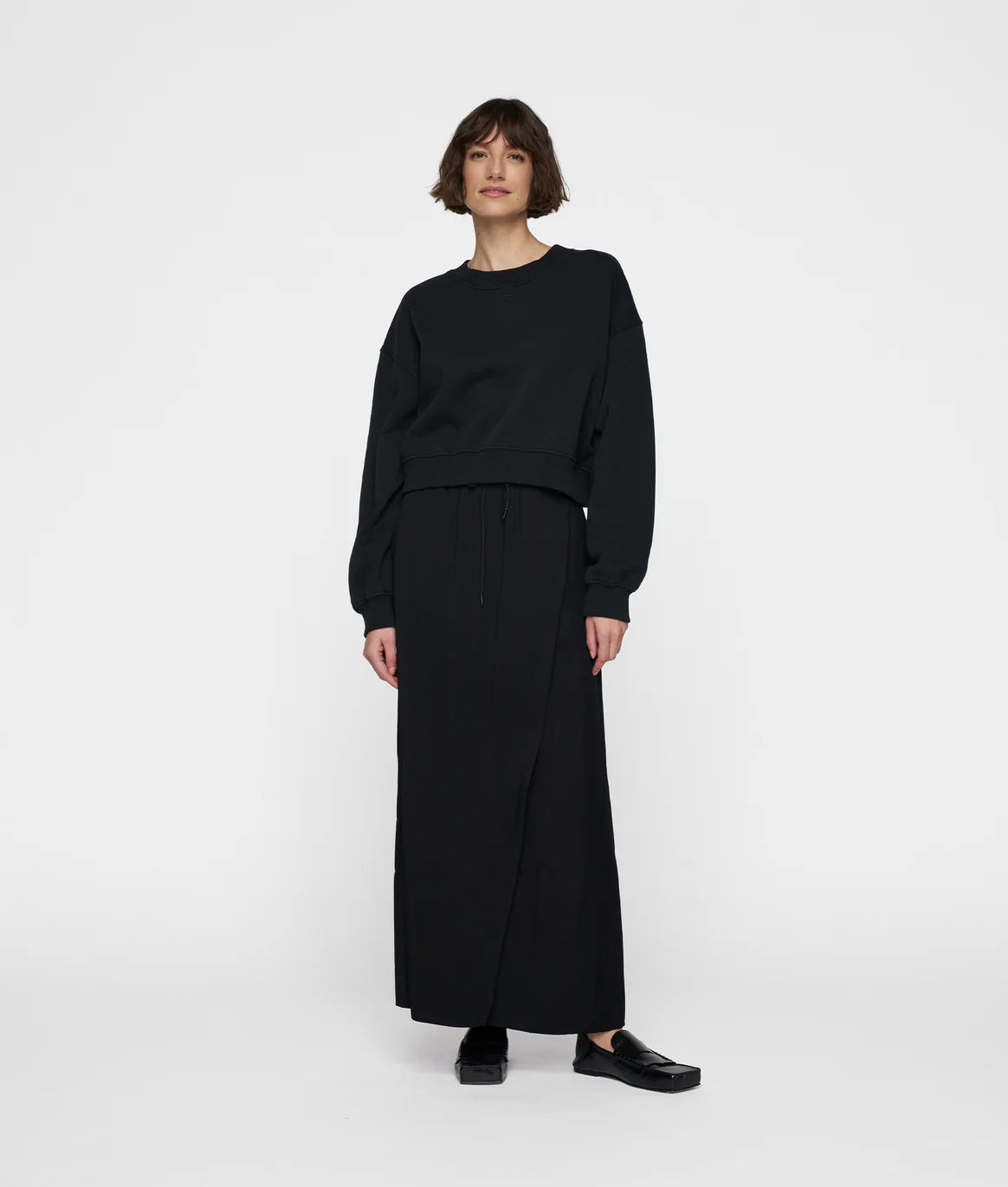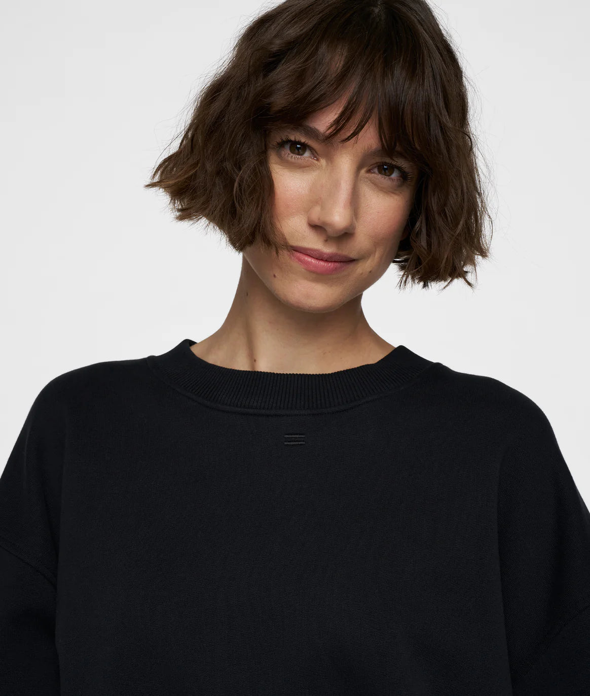 Relaxed fit cropped sweater, gemaakt van GOTS-gecertificeerd biologisch katoenen easy fleece. Voorzien van ribgebreide boorden en een mini stripes logo borduring op de borst.
