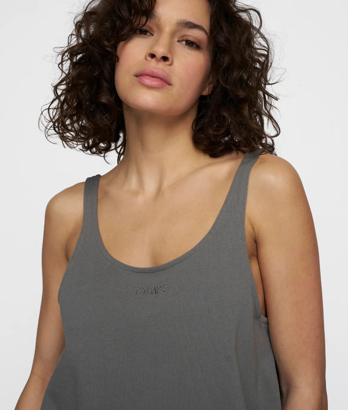 Relaxed fit tanktop met logo van 10 Days vooraan. Het is gemaakt van biologisch katoen. Het heeft een ronde hals en een laag uitgesneden rug.