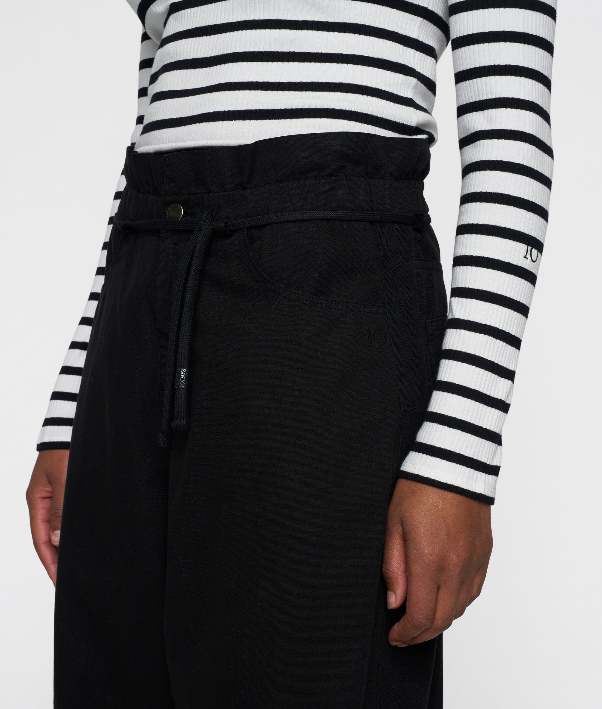 De paperbag broek is een perfect item om je lentelook een stoer karakter te geven. Hij heeft een hoge taille met rekband en een trekkoord in de taille, wat hem zeer comfy maakt. Perfect voor elke gelegenheid.