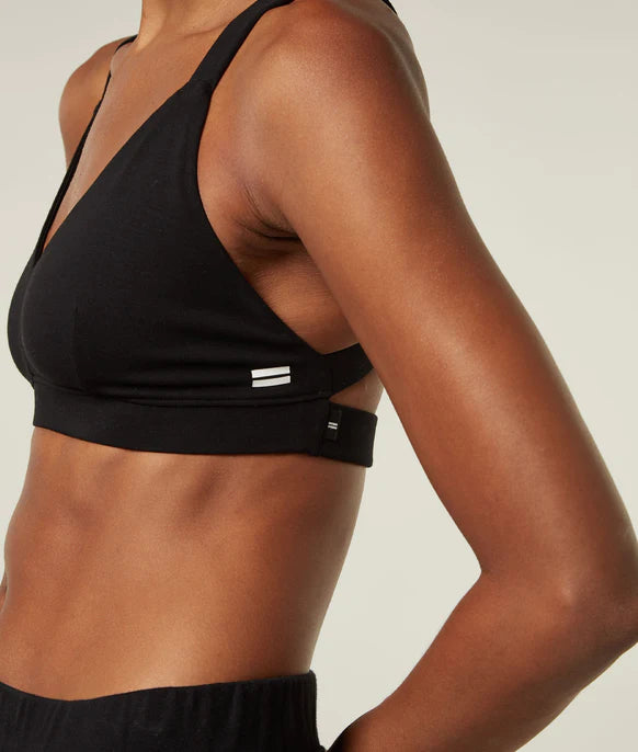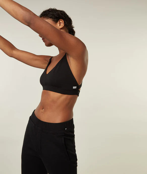 Sportieve BH top met gekruiste bandjes achter, gemaakt van biologisch katoenen jersey. Voorzien van een mini stripes logo en voldoende rek en ondersteuning. De perfecte fit, zowel sportief als casual.