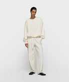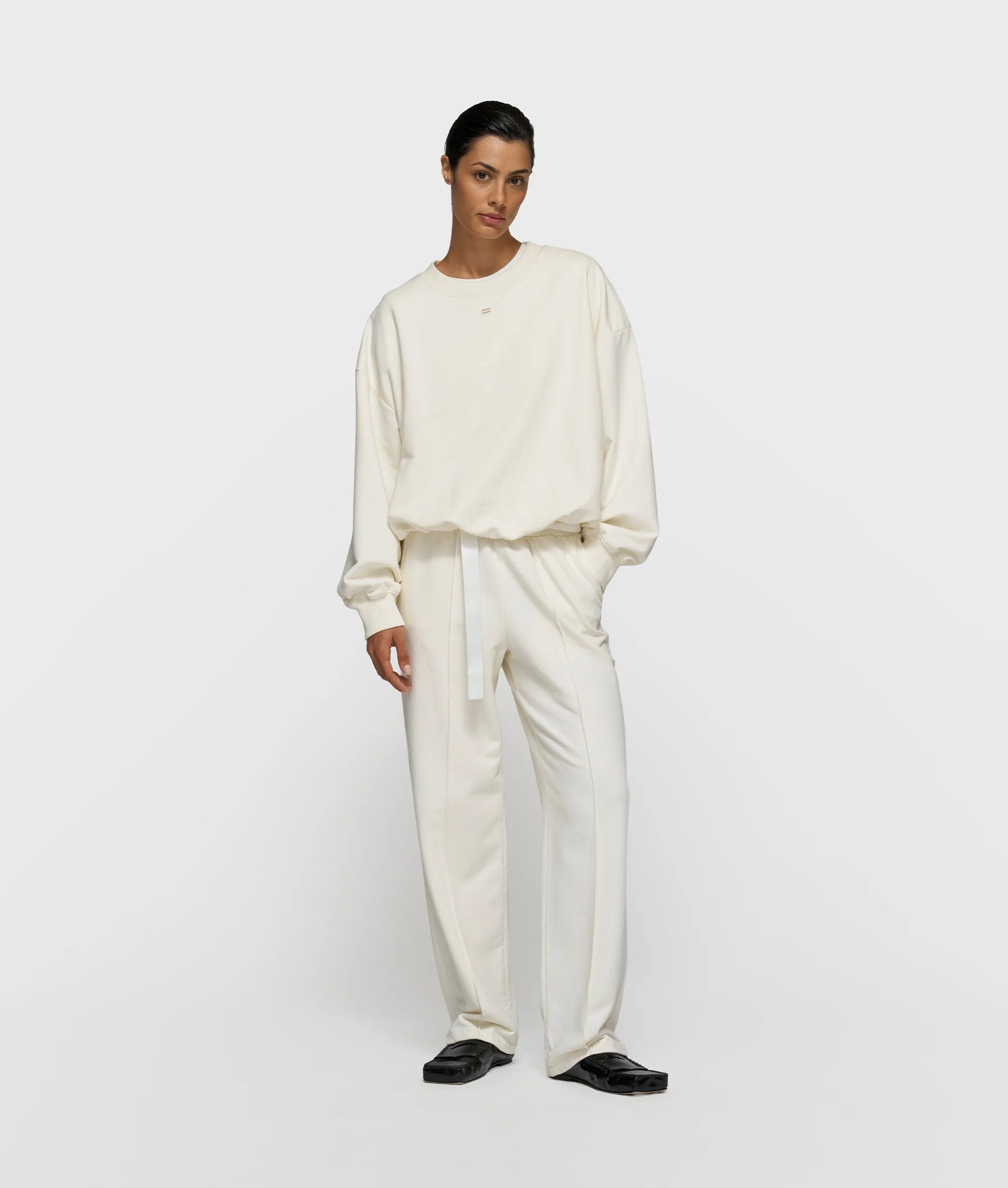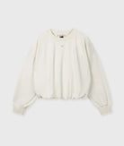 Het subtiele plooidetail geeft het oversized silhouet extra vorm en beweging. De ribgebreide boorden zorgen voor een mooie afwerking en een comfortabele pasvorm. Op de achterzijde is de sweater voorzien van een karakteristiek ‘curly 10’-artwork, terwijl de mini-stripes borduring onder de hals een verfijnd, herkenbaar detail toevoegt – typisch voor 10DAYS.