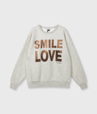 Een opvallende, oversized trui, gemaakt van een zachte katoen-polyester mix. Met een 'SMILE LOVE 10DAYS' folieprint op de voorkant, verlaagde schouders, een ronde halslijn, ribboorden en een klein 'SMILE LOVE 10DAYS' label op de achterkant.
