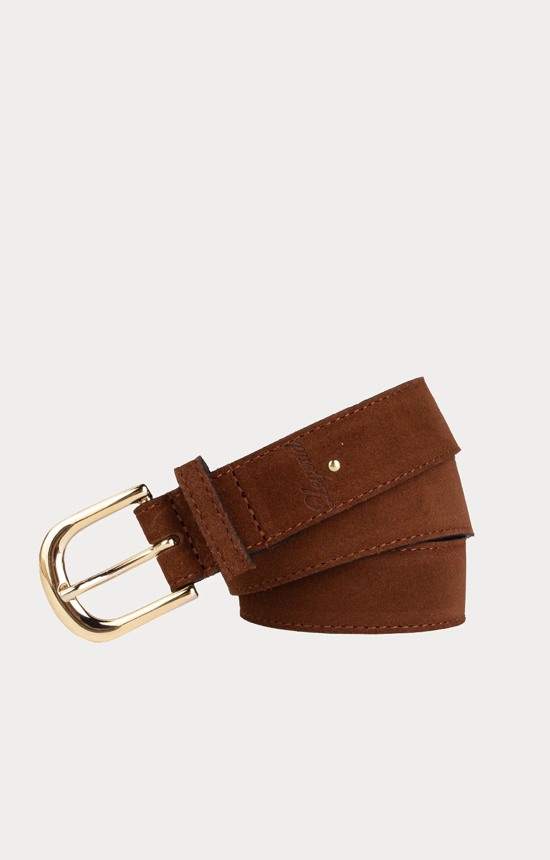 Deze bruine riem van Legend is uitgevoerd in een suède look en is perfect voor elk seizoen. Het model is gemaakt van suede en afgewerkt met een goudkleurige gesp. De zachte textuur en warme kleur zorgen voor een tijdloze uitstraling. Ideaal om te dragen bij een broek of als accent in de taille. Een veelzijdig accessoire voor dagelijks gebruik.