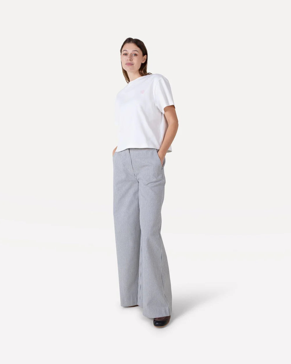 De Moore broek is een must-have deze lente. Hij bestaat uit een stevig katoen, maar oogt zeer fris en trendy door zijn streepjespatroon en wijde pijpen. Combineer met een luchtig hemdje of t-shirt en slippers voor een extra zonnige look.
