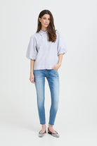 Het Audrey shirt is een echte garderobeklassieker met een moderne twist. Dit luchtige damesblouseje heeft een fris blauw-wit streeppatroon en valt op door de stijlvolle wijdere mouwen die een vrouwelijke, speelse look geven. De rechte pasvorm en knoopsluiting maken het shirt tijdloos én makkelijk te combineren.