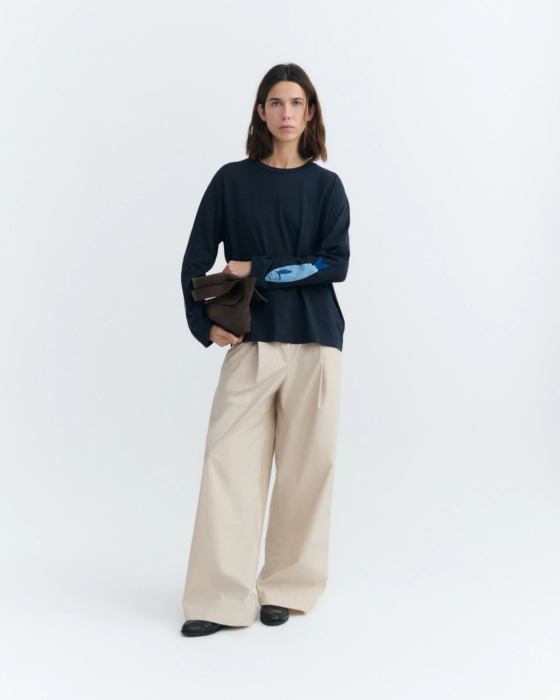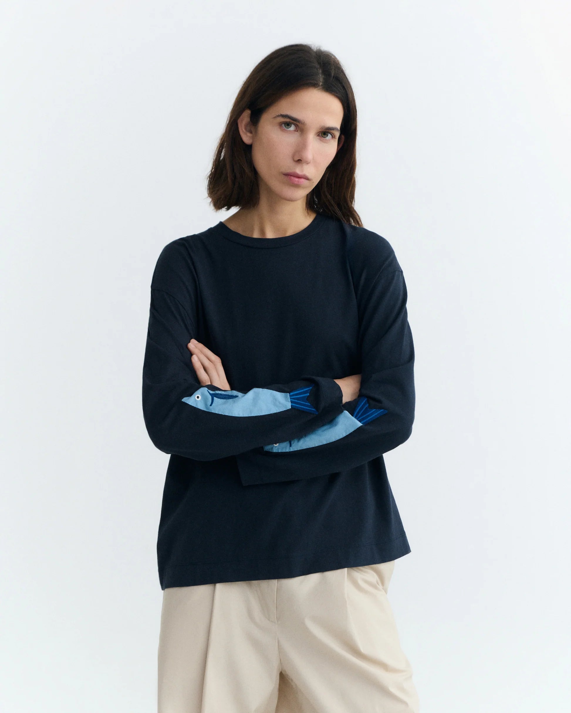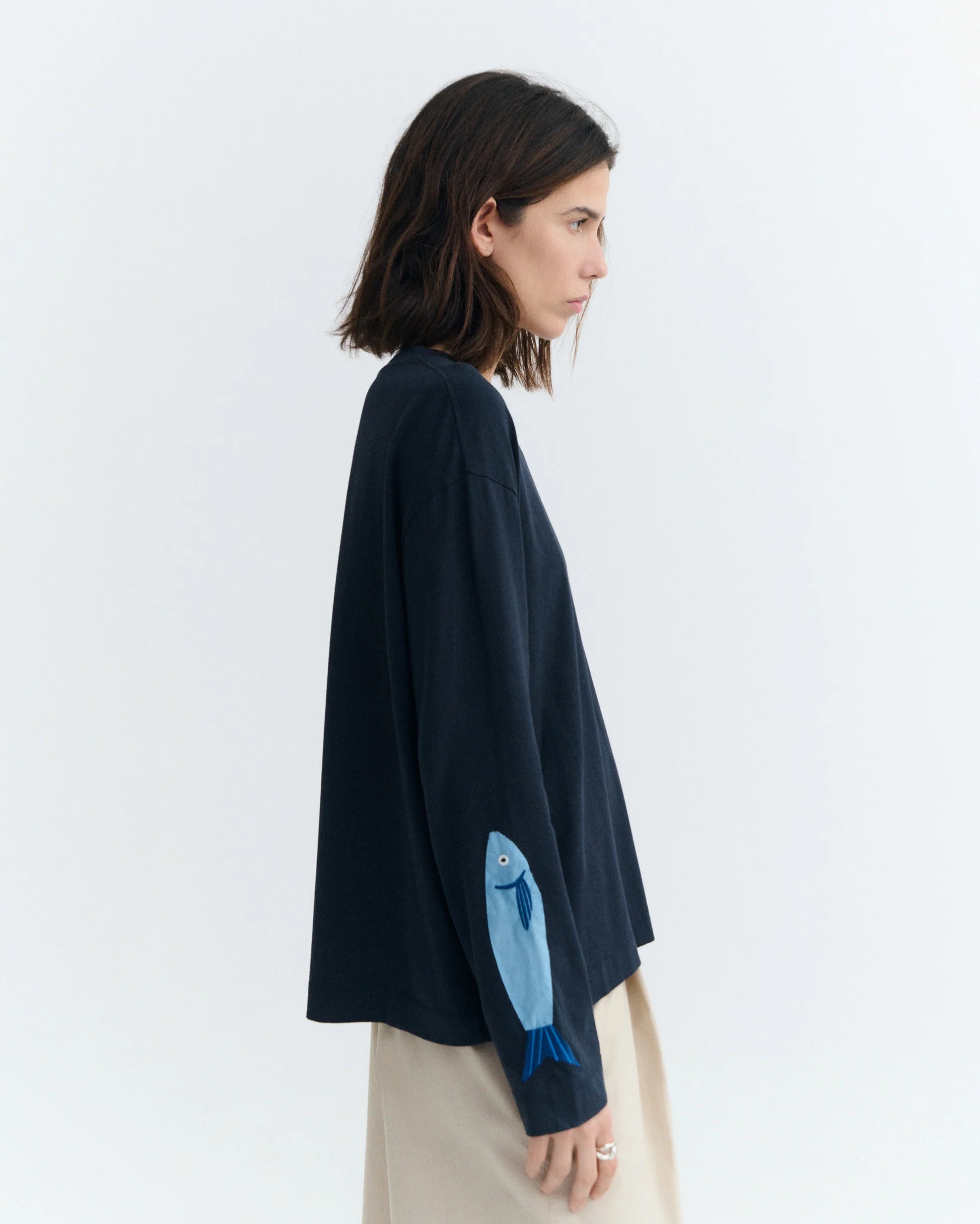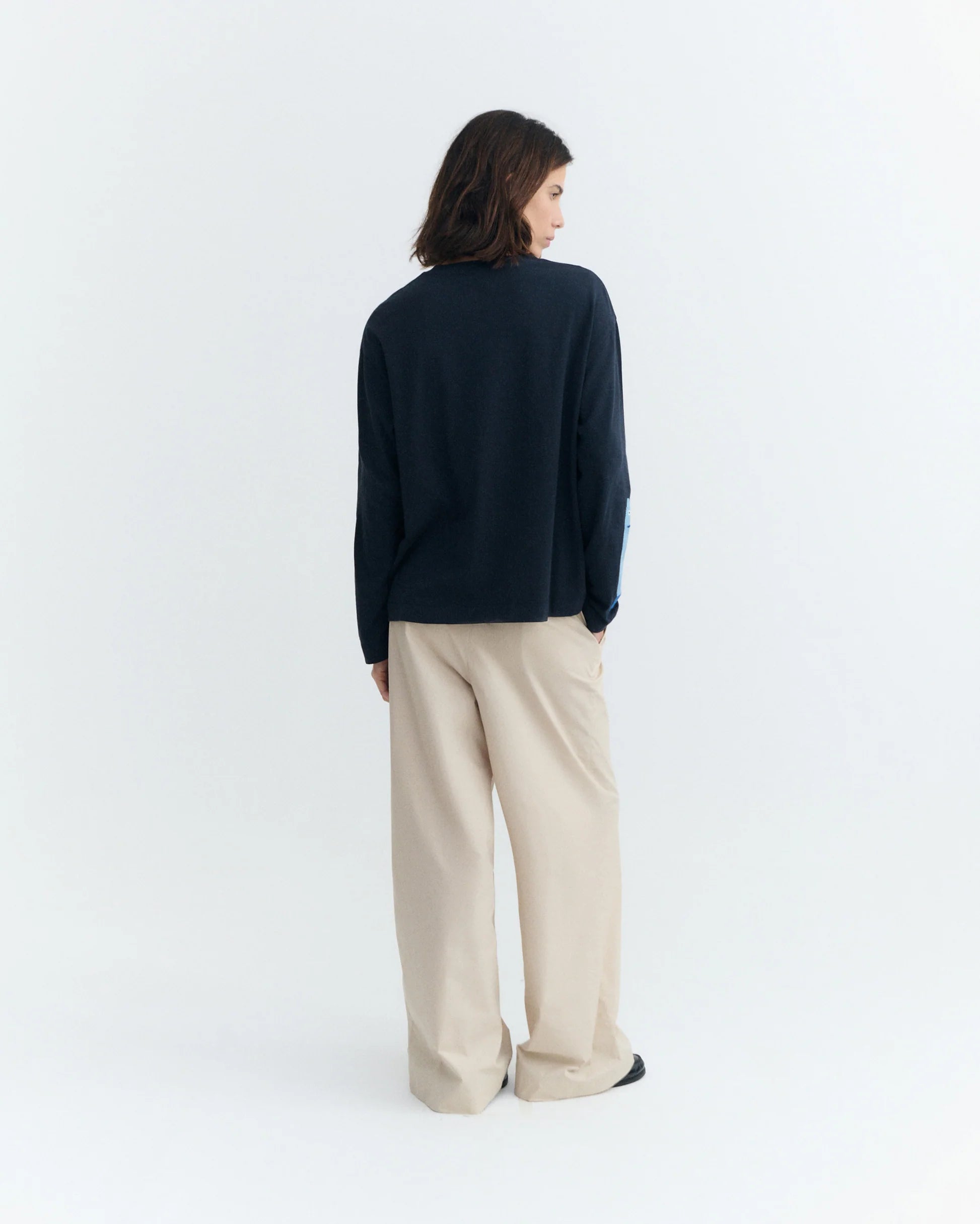 Deze coole Emily t-shirt heeft een relaxed fit voor een extra trendy effect. Hij heeft een ronde hals en een mooie patchwork als mooi detail. Door zijn navy kleur valt hij met zowat alles te dragen.