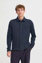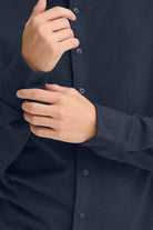 Het Arkan hemd is zachter dan zacht. Hij is gemaakt uit een blauwe, katoenen stof met ton-sur-ton knoopjes. Perfect voor kantoor, de feestdagen of een casual afspraak met de vrienden.