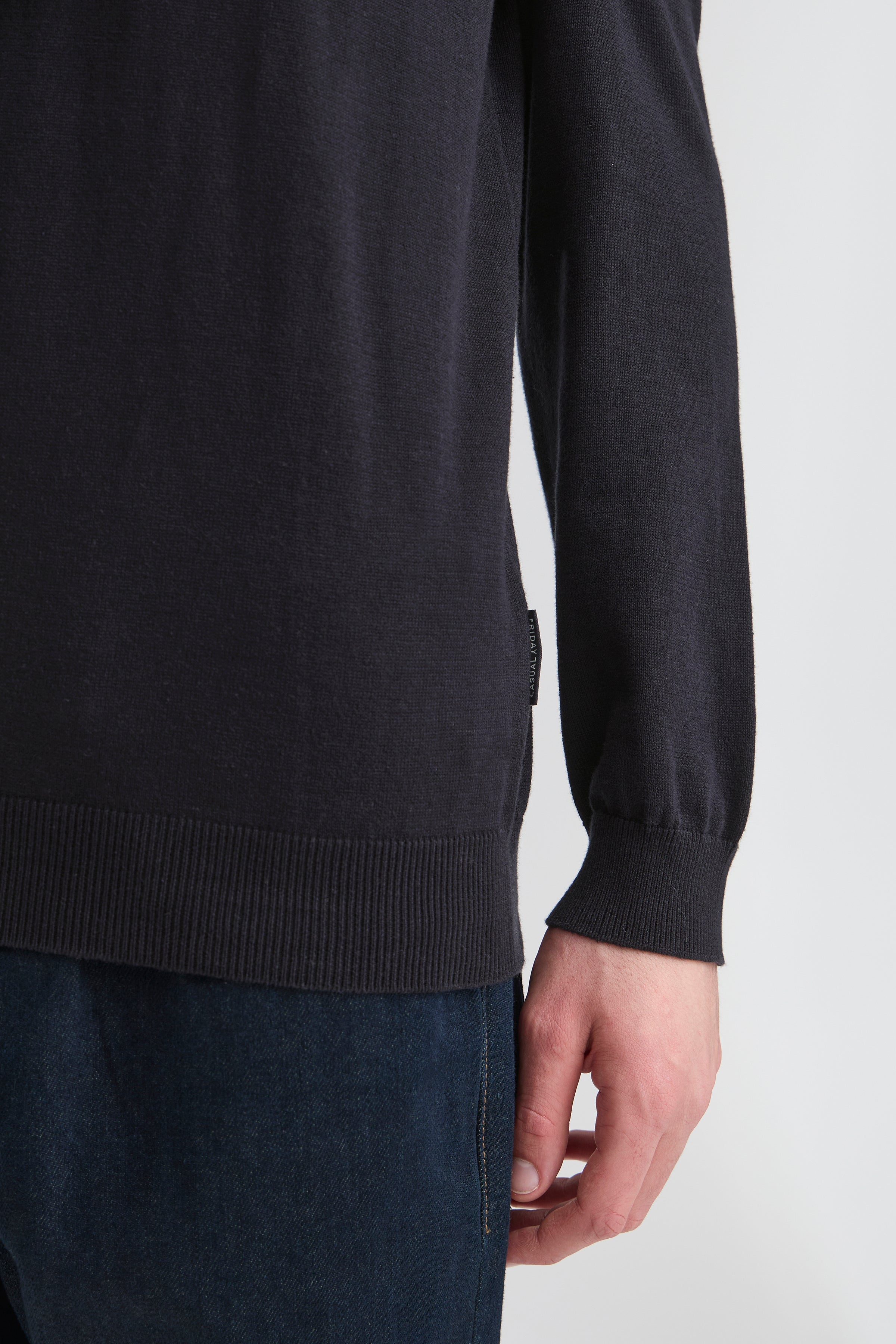 Dun donkerblauw truitje in een fijne katoenen brei. Lekker minimalistisch en geschikt voor elke gelegenheid.
