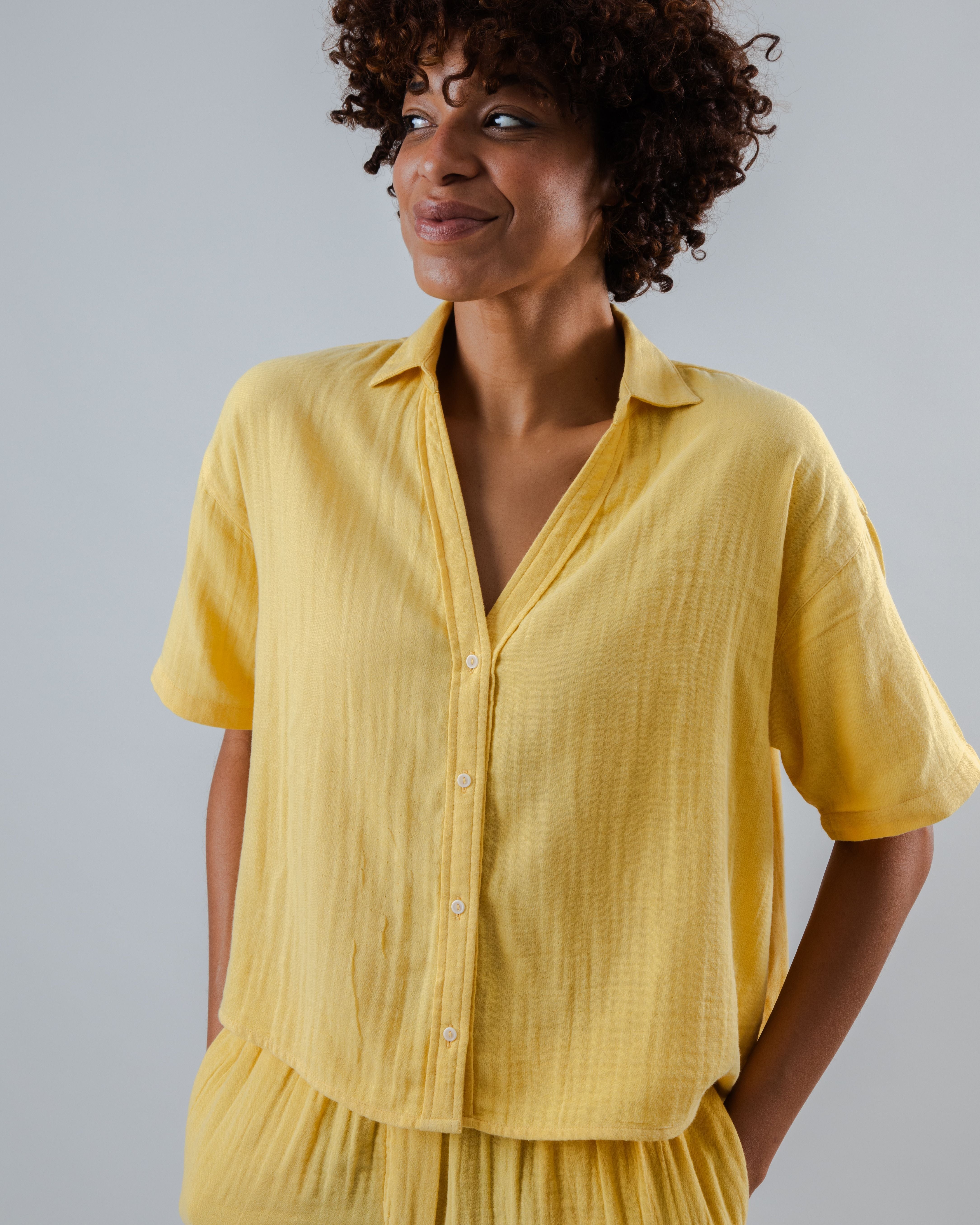 Hoge rechte korte broek met elastische tailleband voor comfort. Voorzien van zakken aan de voorkant en een achterzak. Ethisch gemaakt van biologisch katoen.