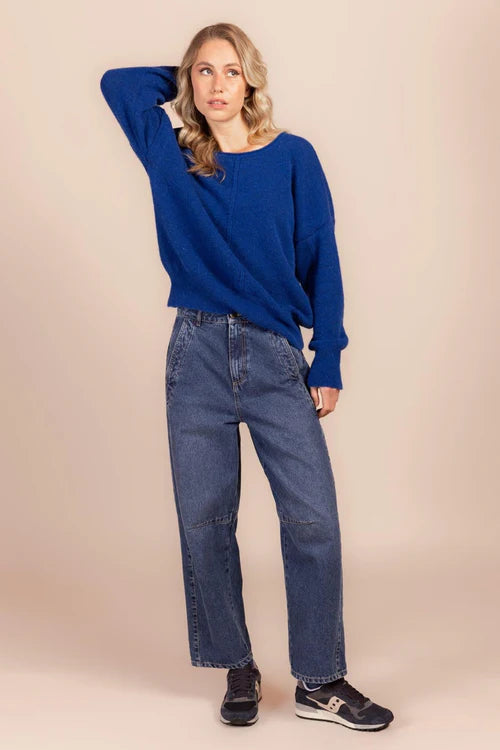 Deze sweater verrast subtiel met een V-hals achteraan in de nek. De voorzijde is verfijnd afgewerkt en de lange mouwen zorgen voor comfort. Gebreid in België met aandacht voor kwaliteit en stijl, een stuk dat blijft dus!