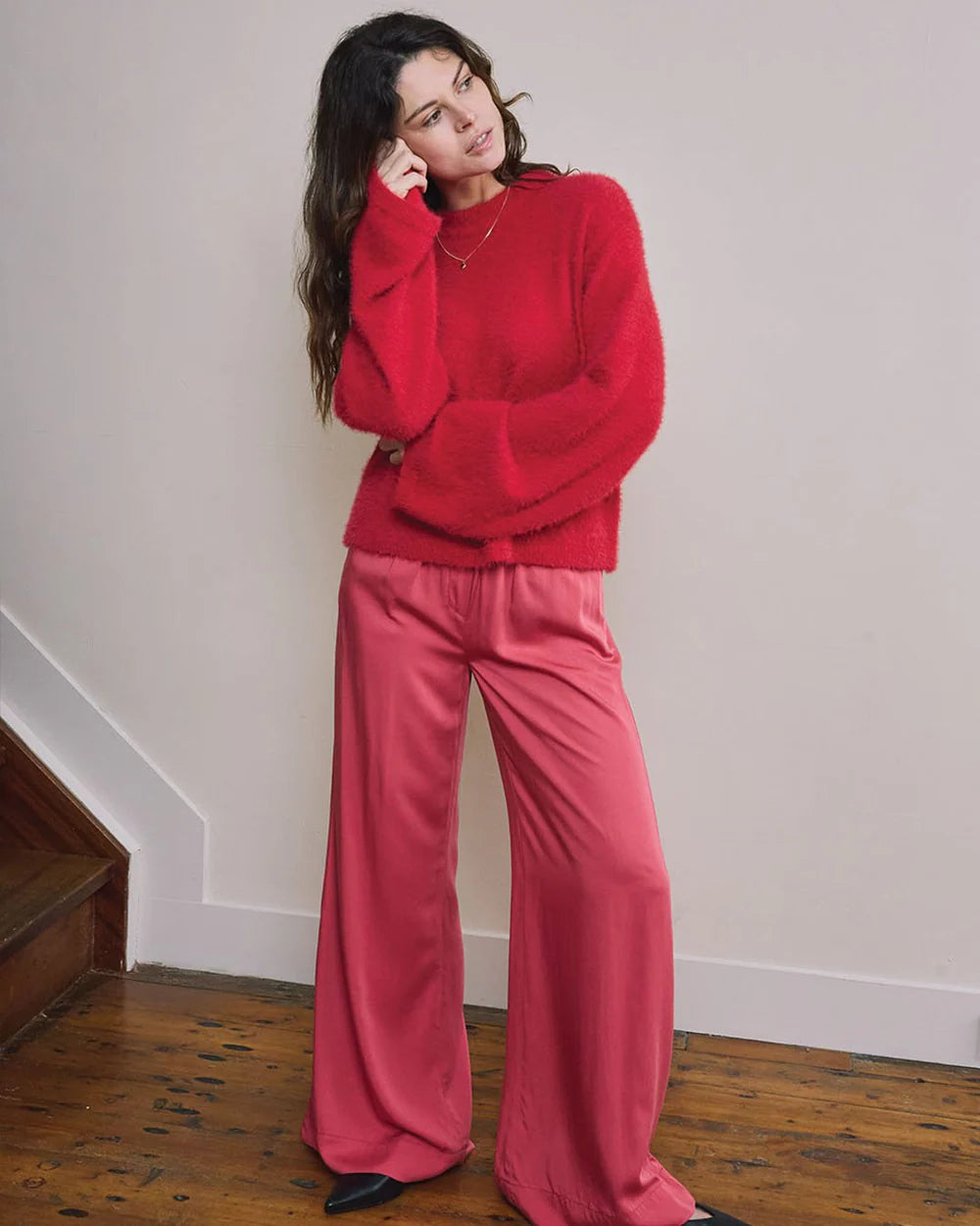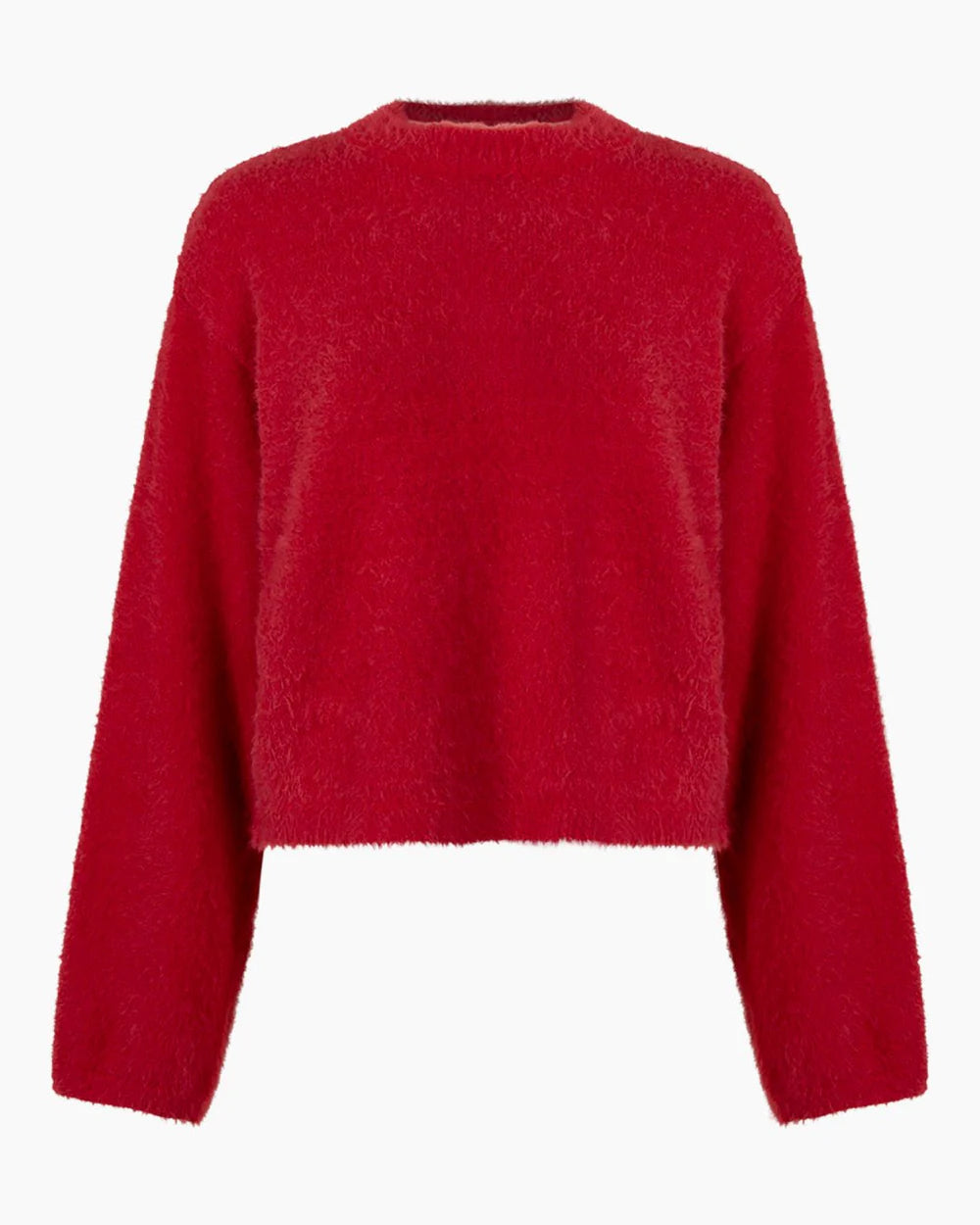 De Amaya Knitted Pull staat voor zachtheid en comfort. Deze trui is gemaakt van een behaaglijke, harige breistof en heeft een losse pasvorm, wijde mouwen en verlaagde schouders voor een ontspannen silhouet. Of je je nu chic kleedt of juist casual, deze trui geeft elke look een zachte uitstraling.