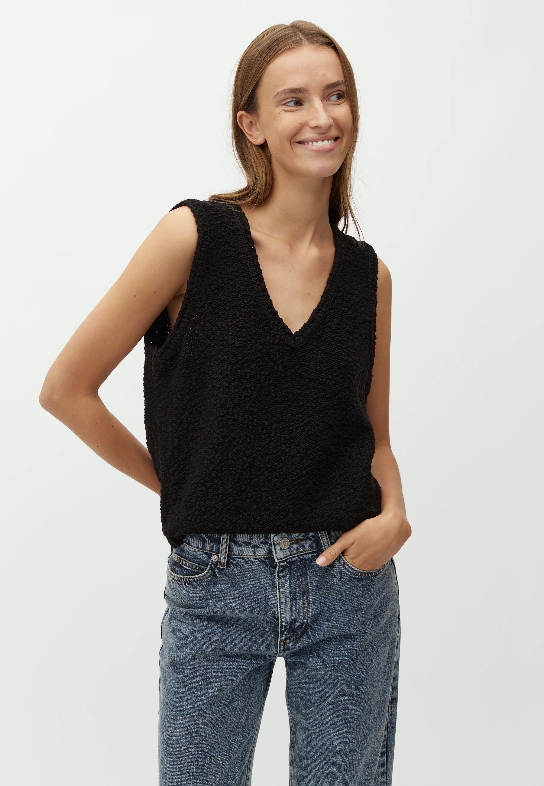 De Merac top van MbyM is een echte essential voor elke garderobe. Deze stijlvolle zwarte top is gehaakt en afgewerkt met korte mouwen, wat zorgt voor een trendy en luchtige look. Het unieke aan dit item? Je kan hem langs twee kanten dragen! Kies voor een elegante V-hals vooraan of draag hem omgekeerd voor een subtiele, speelse touch.