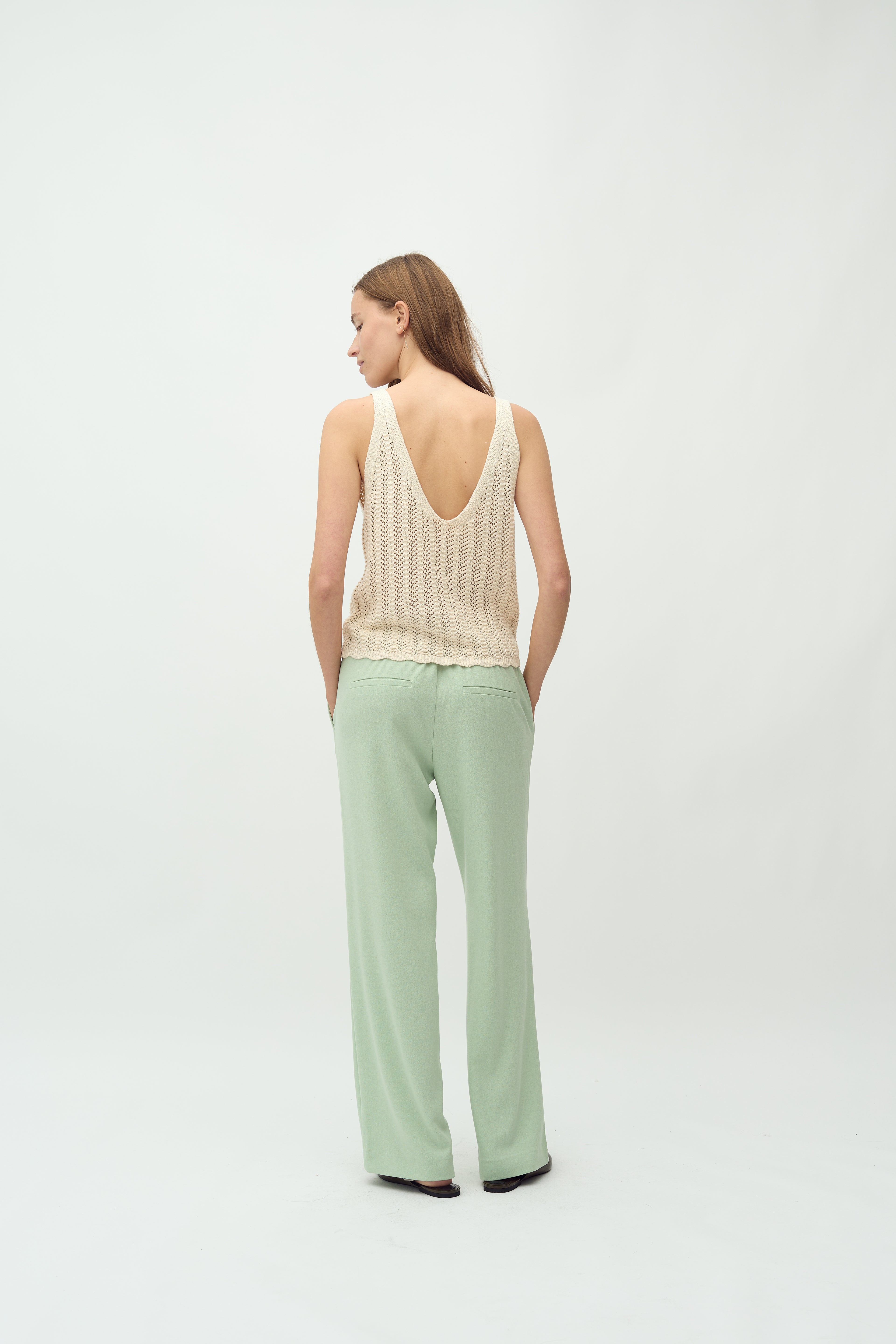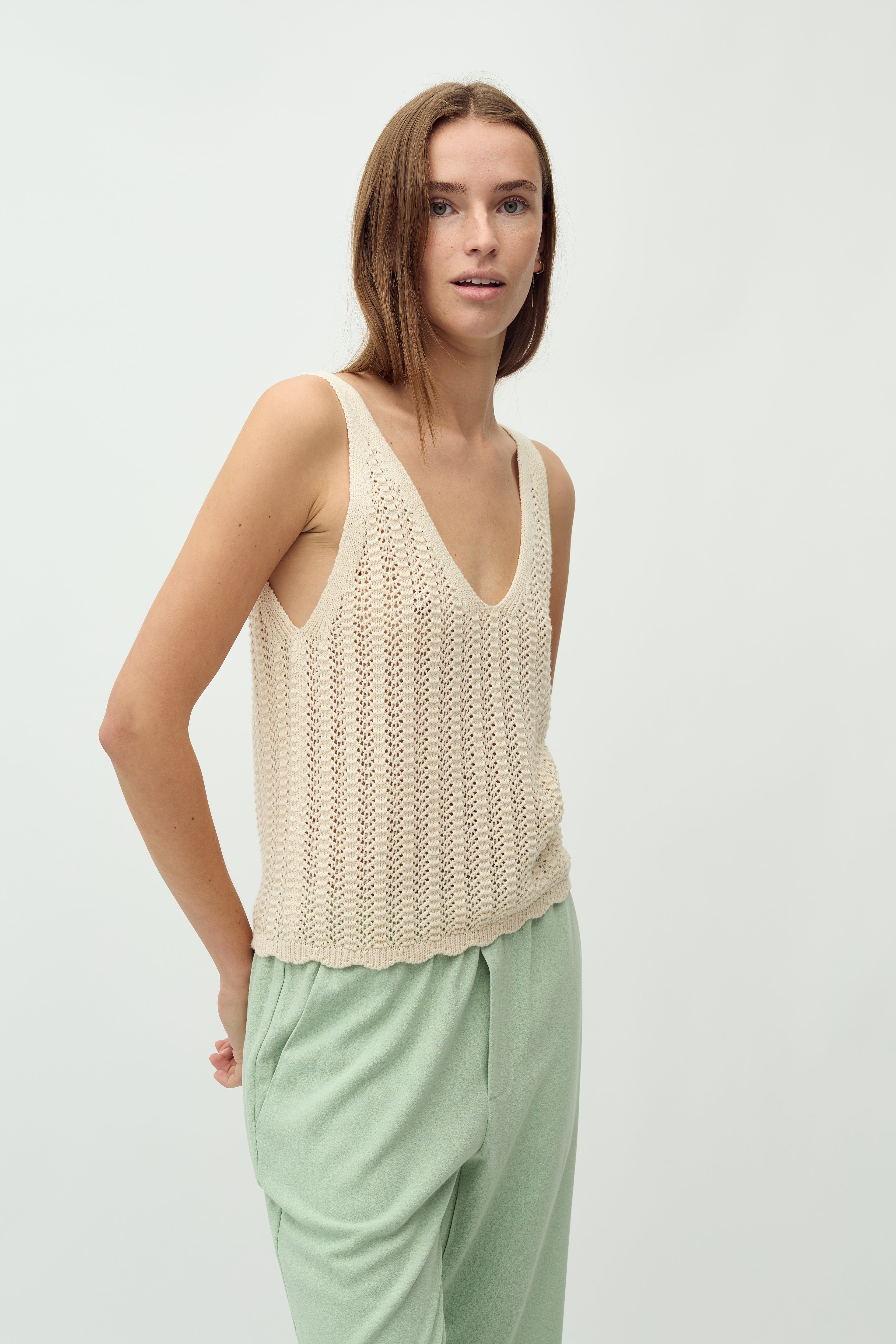 Gebreide zomertop met hals- en ruguitsnijding. Perfect voor de hete zomerdagen.