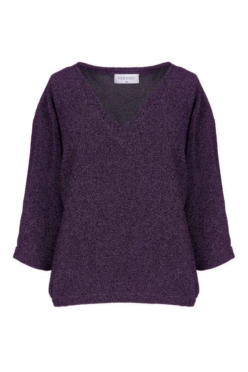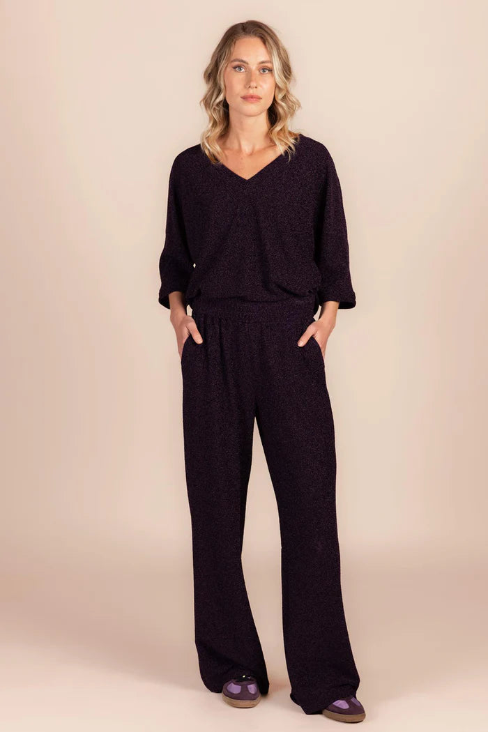 Soft sparkle! Een blouse die zowel straalt als zacht aanvoelt? Yes please. De paarse, soepele stof heeft een subtiele glans en voelt als een tweede huid. Loose fit, V-hals en middellange mouwen zorgen voor de perfecte shape. Met broek 8639 erbij? Match made in heaven.