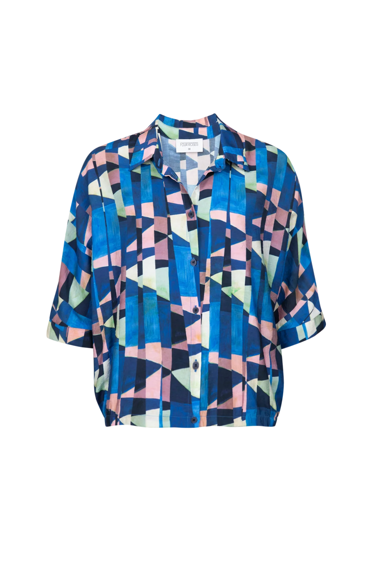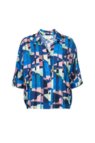 Een echte bestseller. Deze volledig doorknoopte blouse in een geometrische print en krachtige kleuren voelt luchtig en comfortabel aan. De driekwartmouwen met een ruimere inzet en de rekker in de taille zorgen voor een subtiel bloezend, vrouwelijk effect. HIj combineert super makkelijk op heel wat broeken uit de Four Roses collectie.