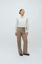 Het Emaly hemdje is een cool boxy shirtje met een fijne streep. Hij komt net tot aan de broeksrand voor een trendy, jonge look. Maak deze feestelijk door hem te dragen op een brede, geklede broek en hakjes. Of ga je meer voor een stoere look, kies dan voor een coole jeans en sneakers.
