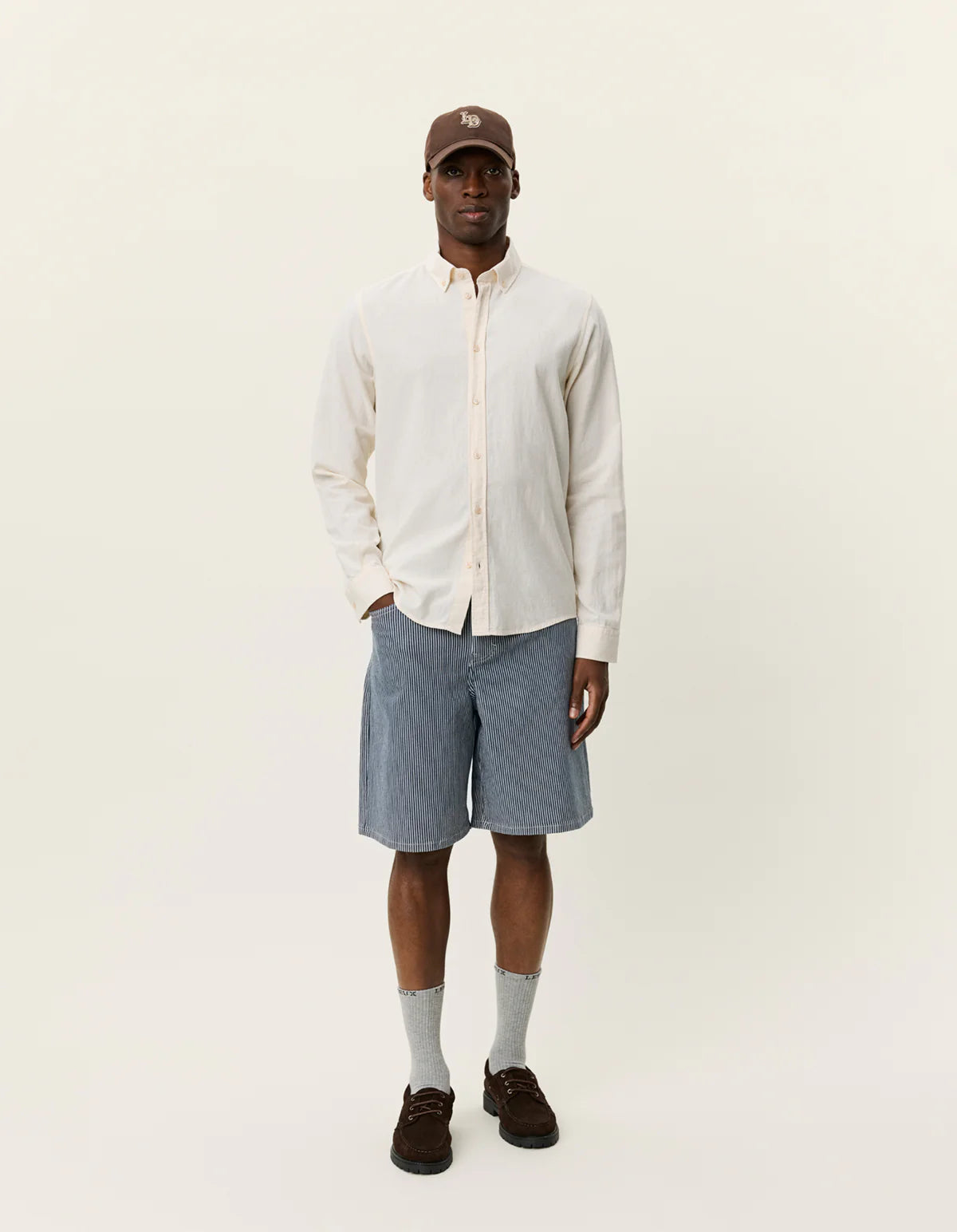 Een zomerse editie uit de Konrad-serie van Les Deux Copenhagen. Een comfortabel overhemd voor elke dag, afgewerkt met een button-down kraag en tonale borduursels op de borst, gemaakt van een frisse katoenen-linnenmix.