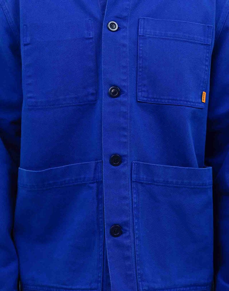Een stoere worker in electric blue. De kleur en de pasvorm spreken voor zich. Een sterk item waar je elke dag van kan genieten.