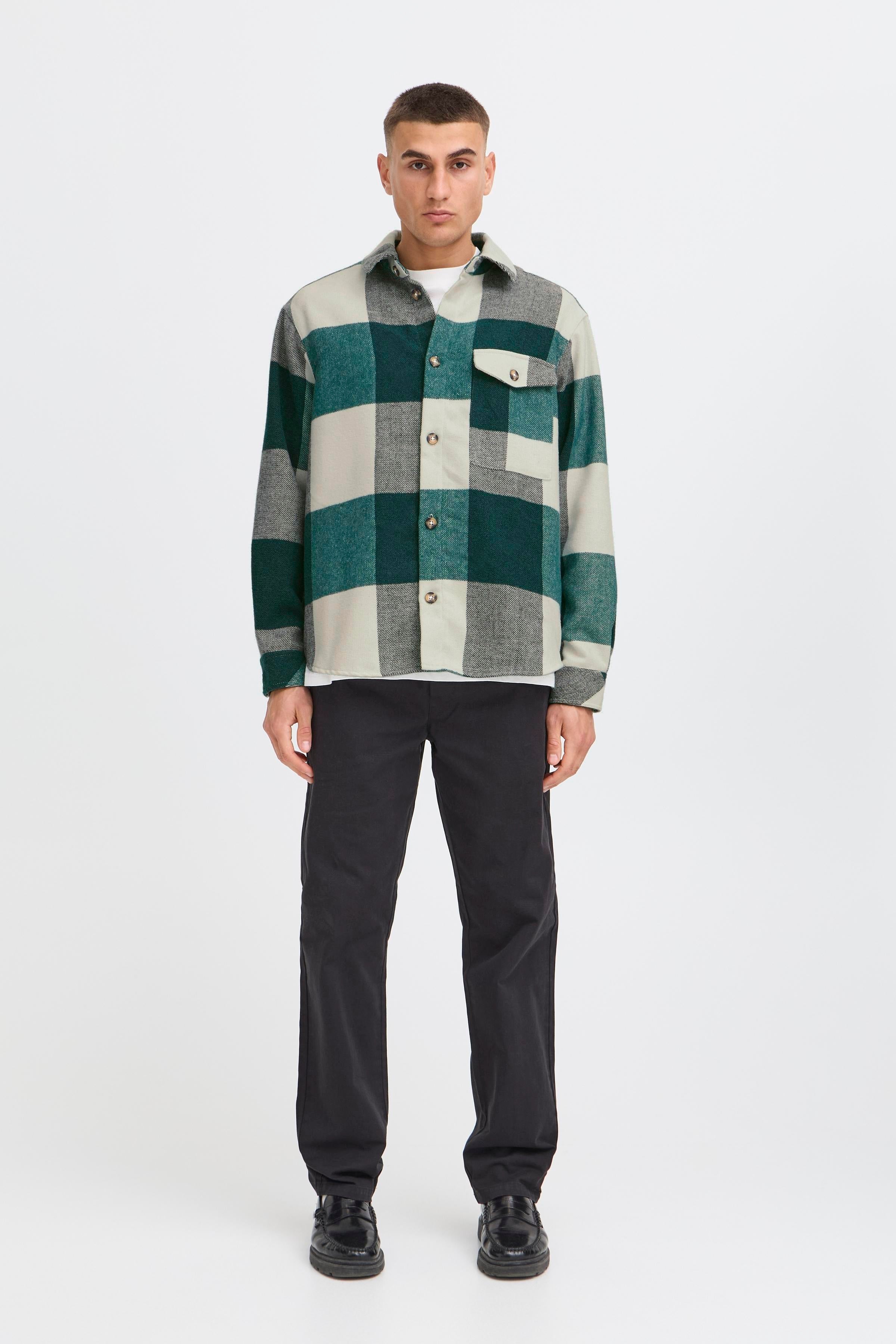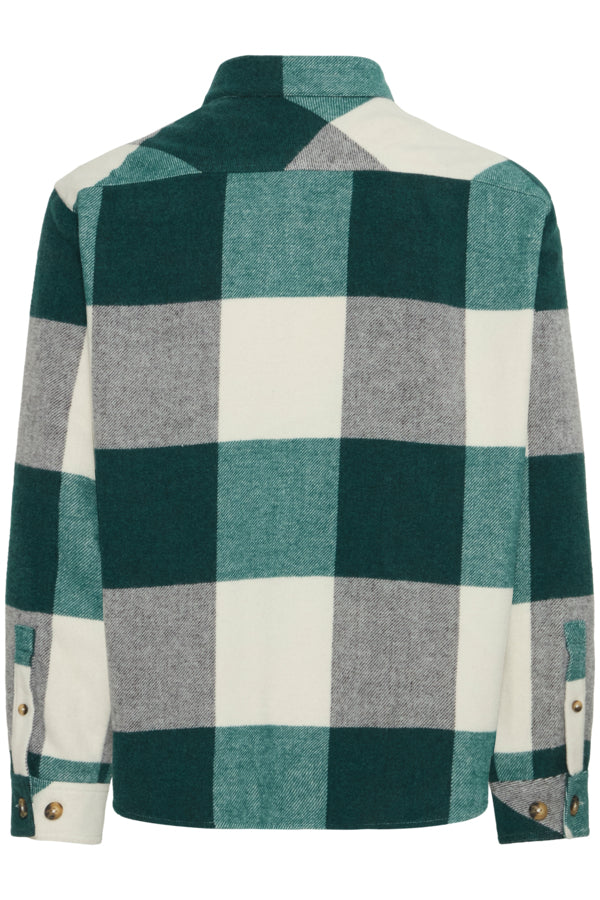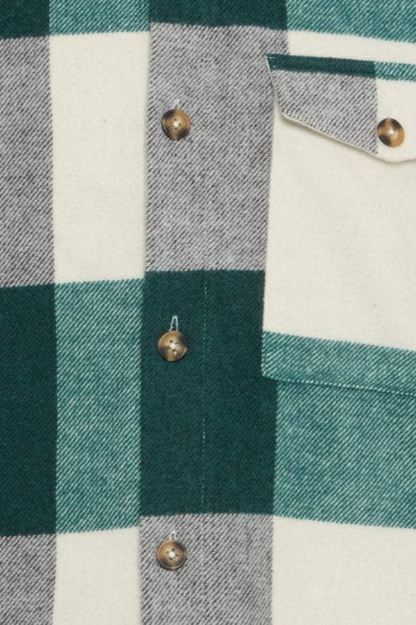 Geruit overshirt in grijs, groen en ecru in een zachte, dikkere flanellen katoen.