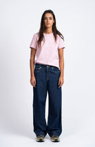De Paule is een rechte jeans met een lichte wijdere pasvorm, vijf zakken, riemlussen, knoop- en ritssluiting, verstevigingen en borduurwerk op de tailleband. Beschikbaar in 2 wassingen.