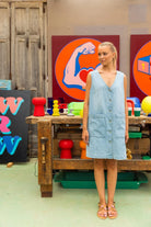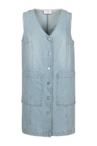 Deze bleke denim en de mouwloze snit zorgen meteen voor een jonge, frisse uitstraling. Draagbaar op heel veel manieren, mouwloos, met t-shirt of cardigan. De volledige doorknooprij maakt dit kleedje extra speels en veelzijdig in styling. Ideaal met laagjes op frissere dagen, maar net zo mooi solo in de zomer.