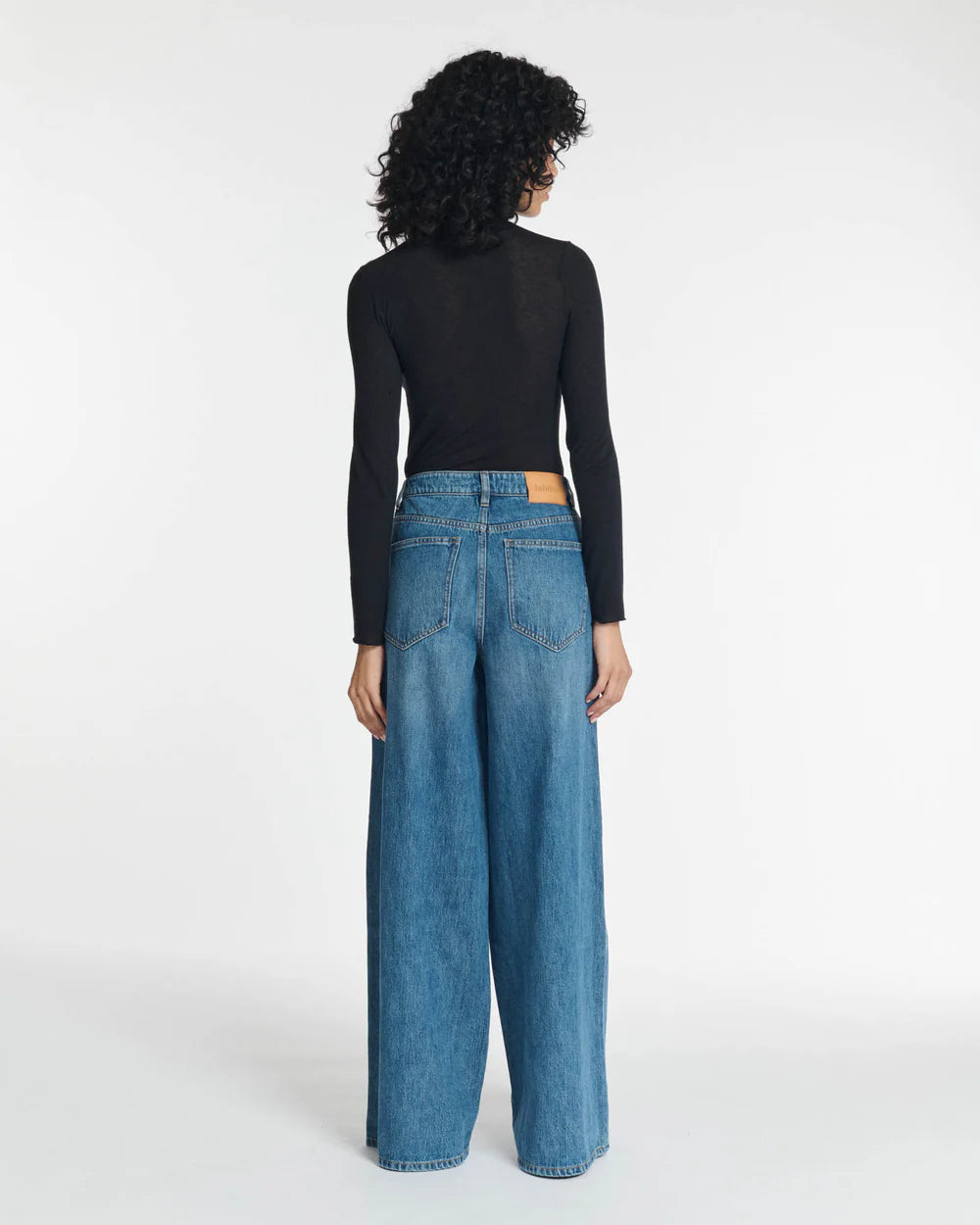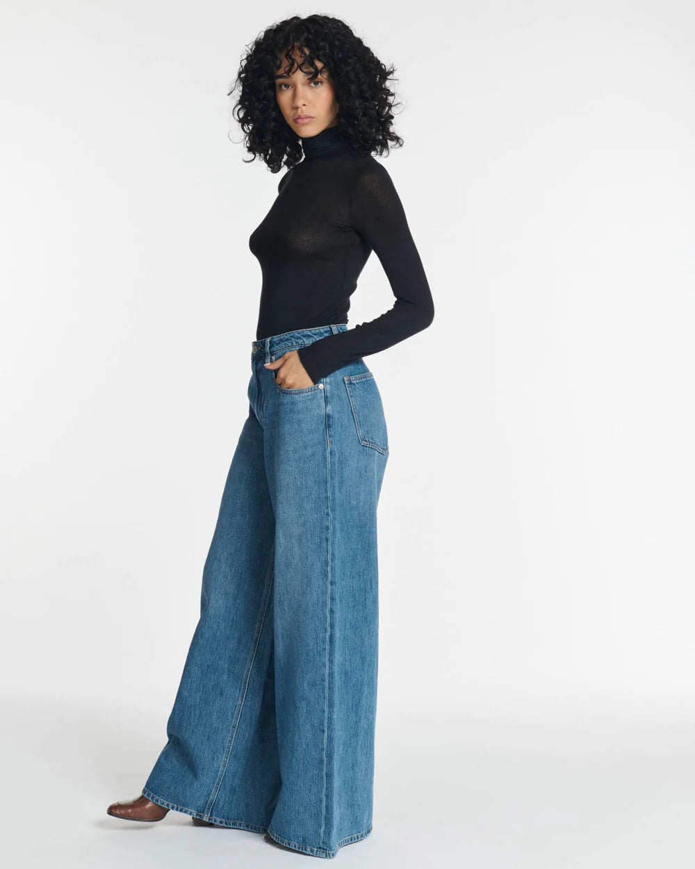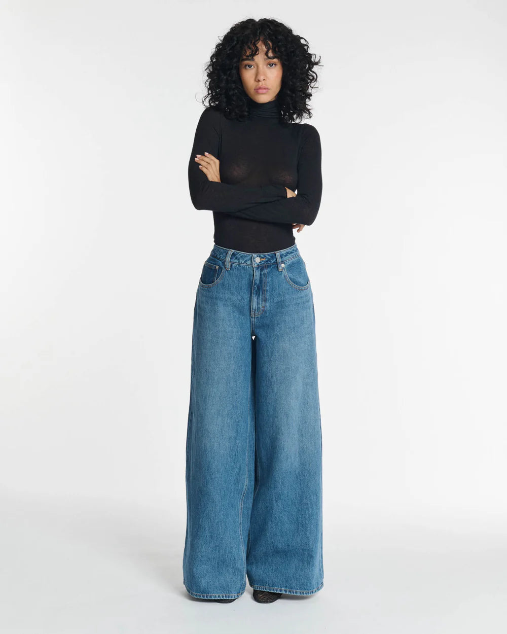 Deze York jeans met wijde, lange pijpen (34 cm breed aan de onderkant) is geïnspireerd op de jaren 70 en viert vrouwelijkheid! Perfecte pasvorm, niet te hoog of te laag.