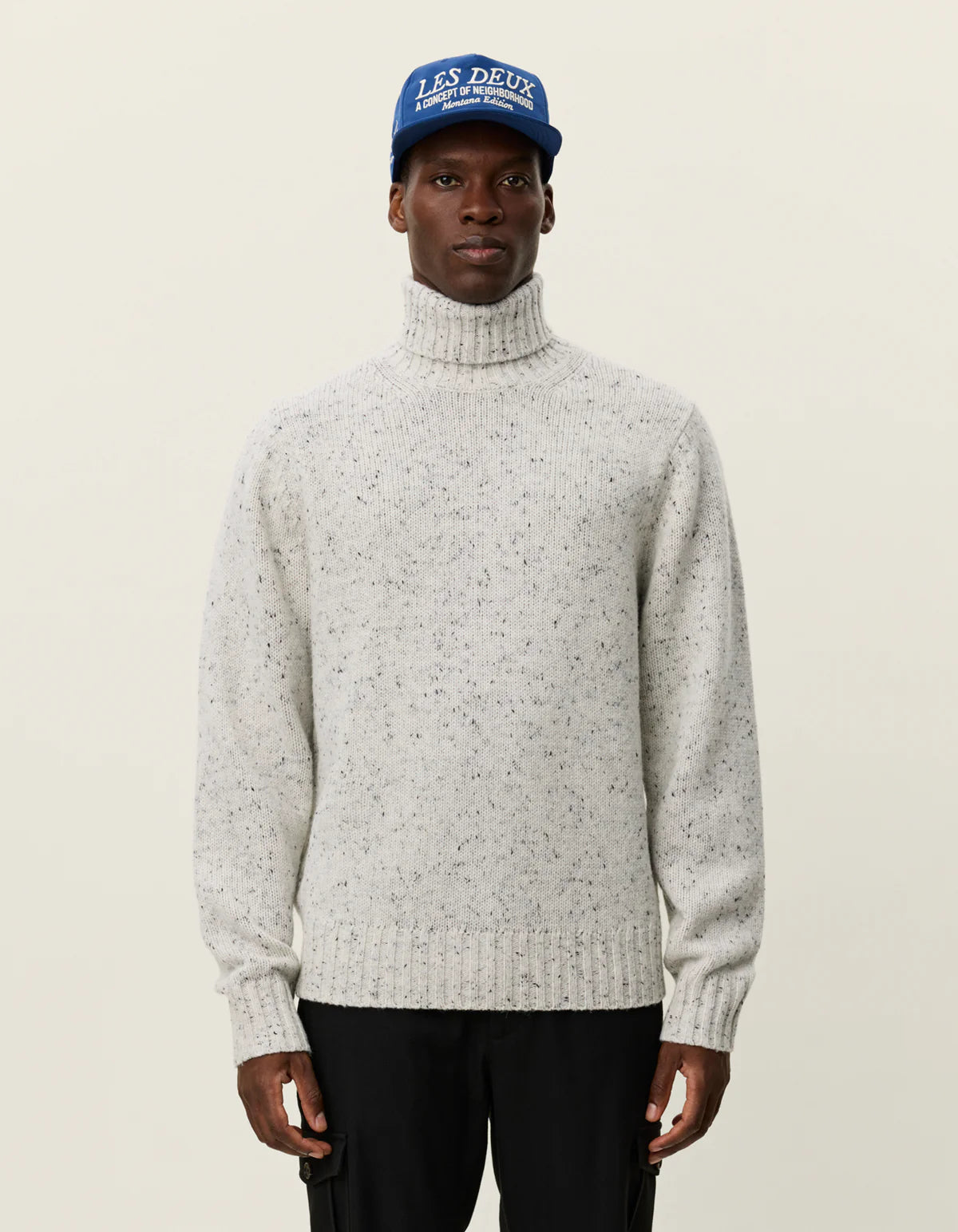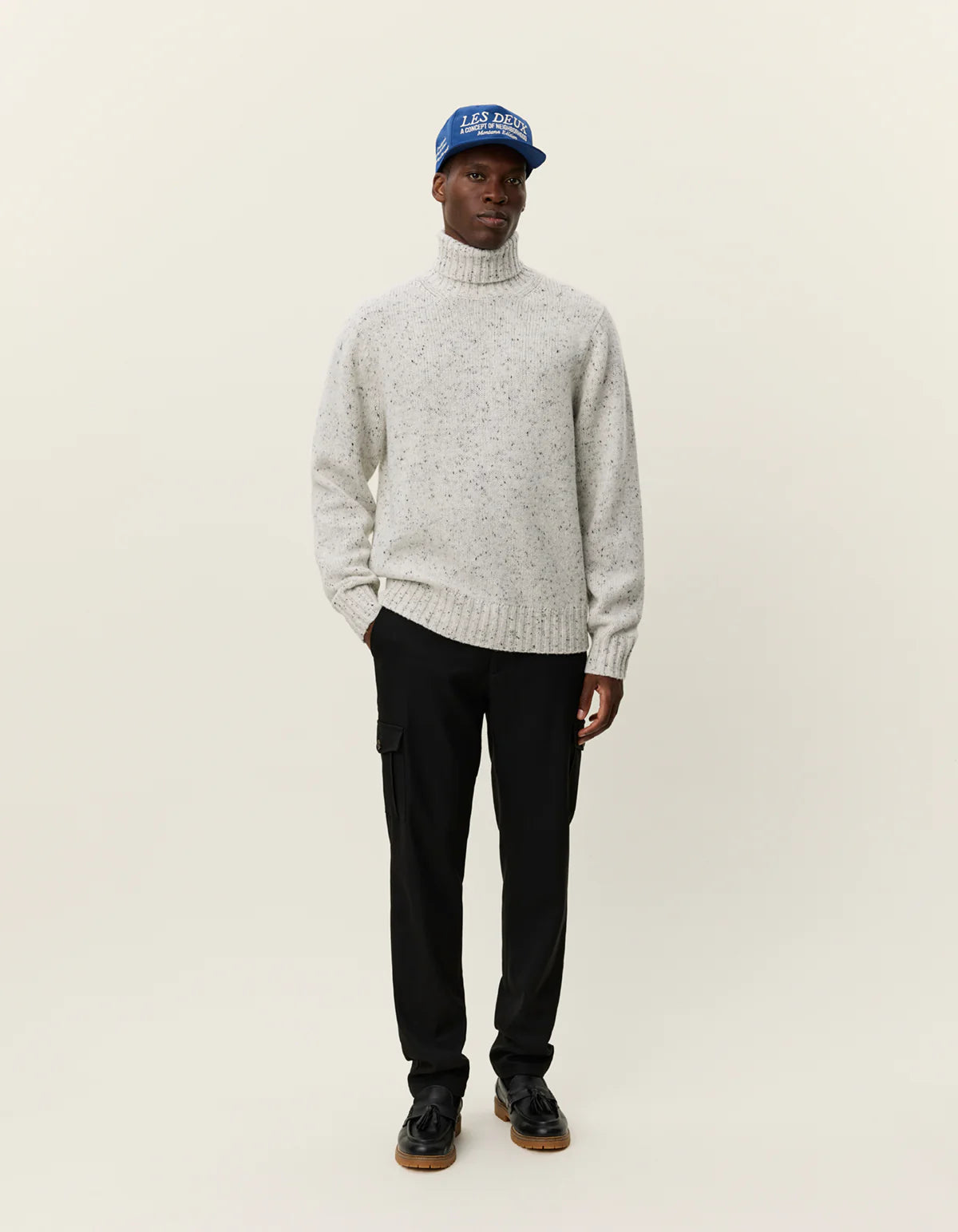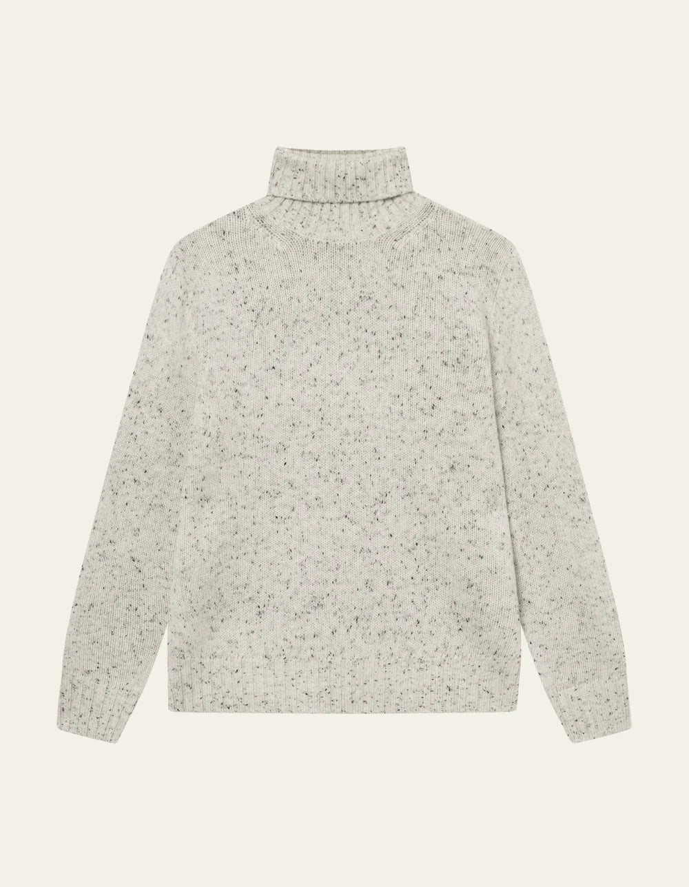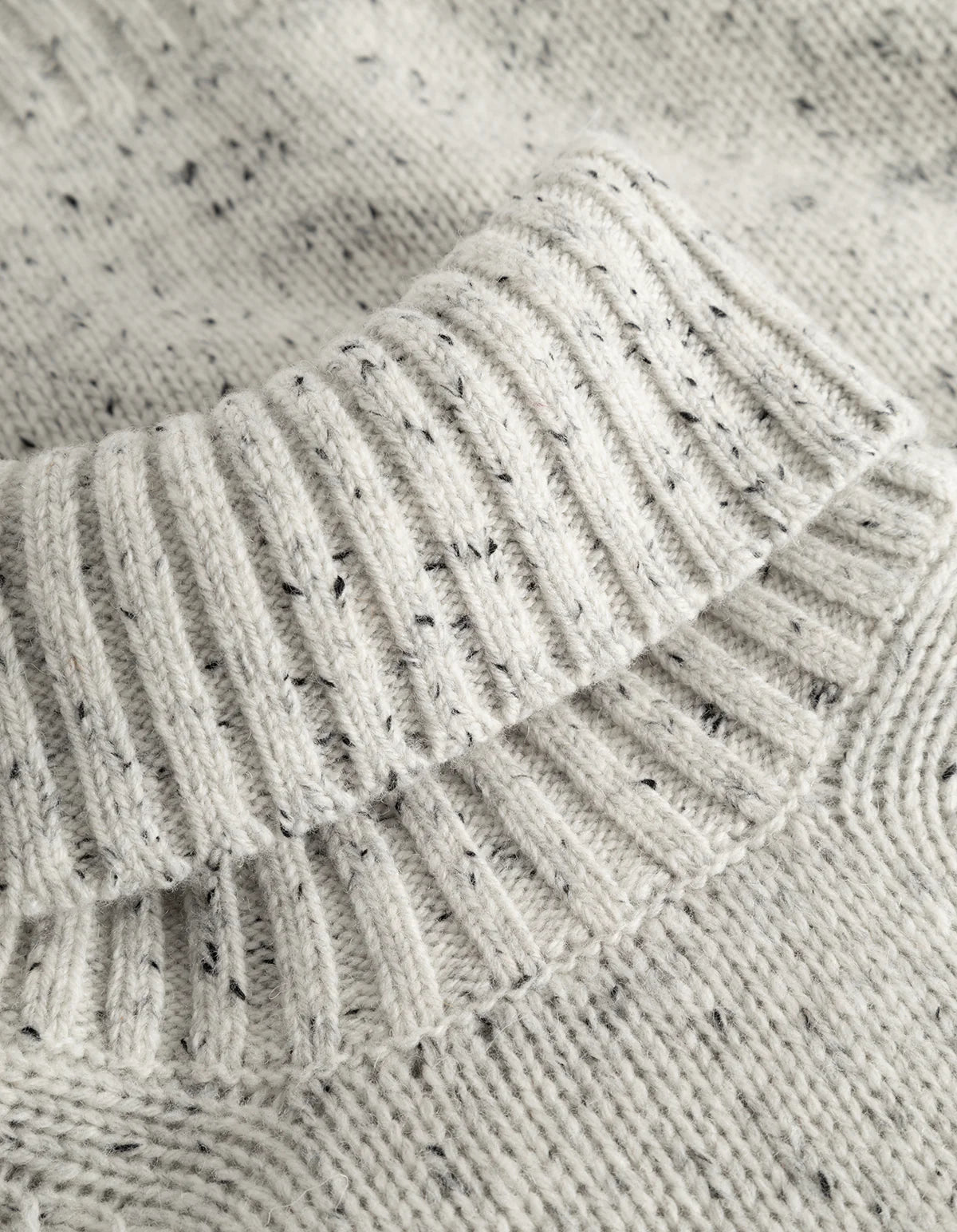 Een structuurbreisel met een subtiel karakter. De Gary rolkraagtrui is gemaakt van zachte wol met gevlekte contrasterende noppen, uitgevoerd in een klassieke vorm met een dikke geribbelde kraag.
