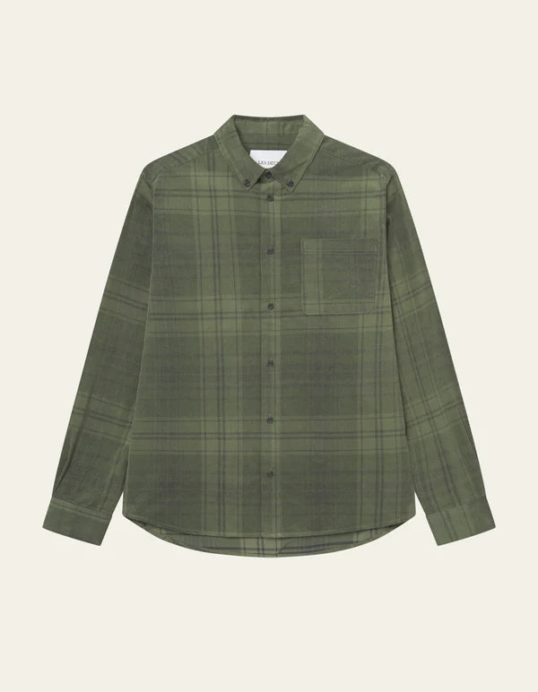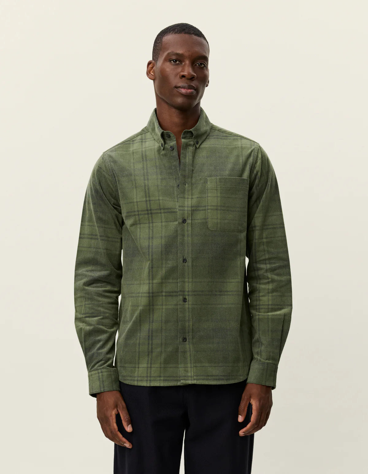 Een relaxed overhemd met subtiele textuur. De Kash is gemaakt van zacht pinwale corduroy met een schaduwruitpatroon, afgewerkt met klassieke kleermakersdetails. Een button-down kraag, opgestikte borstzak en normale pasvorm. Een leuk bovenstuk voor de feesten.