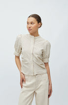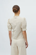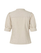 Dit Felia bloesje is een schattig hemdje met fijne ruitjes in ecru en bruin. Door de pofmouwen, krijgt dit bloesje nog meer een girly karakter. Combineer met een stoere jeans voor een cool, trendy look.