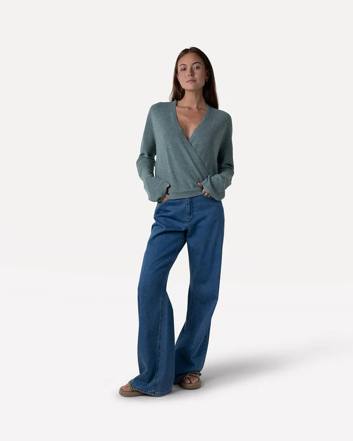 De zachtgroene Lena gebreide pullover combineert een losse pasvorm met verlaagde schouders voor een relaxte, moeiteloze look. Met een vast overlappend detail biedt dit stuk zowel comfort als stijl. Perfect om te dragen in laagjes of op zichzelf. Voor een casual maar trendy look, combineer je hem met wijde jeans en sneakers voor een comfortabele outfit voor onderweg.