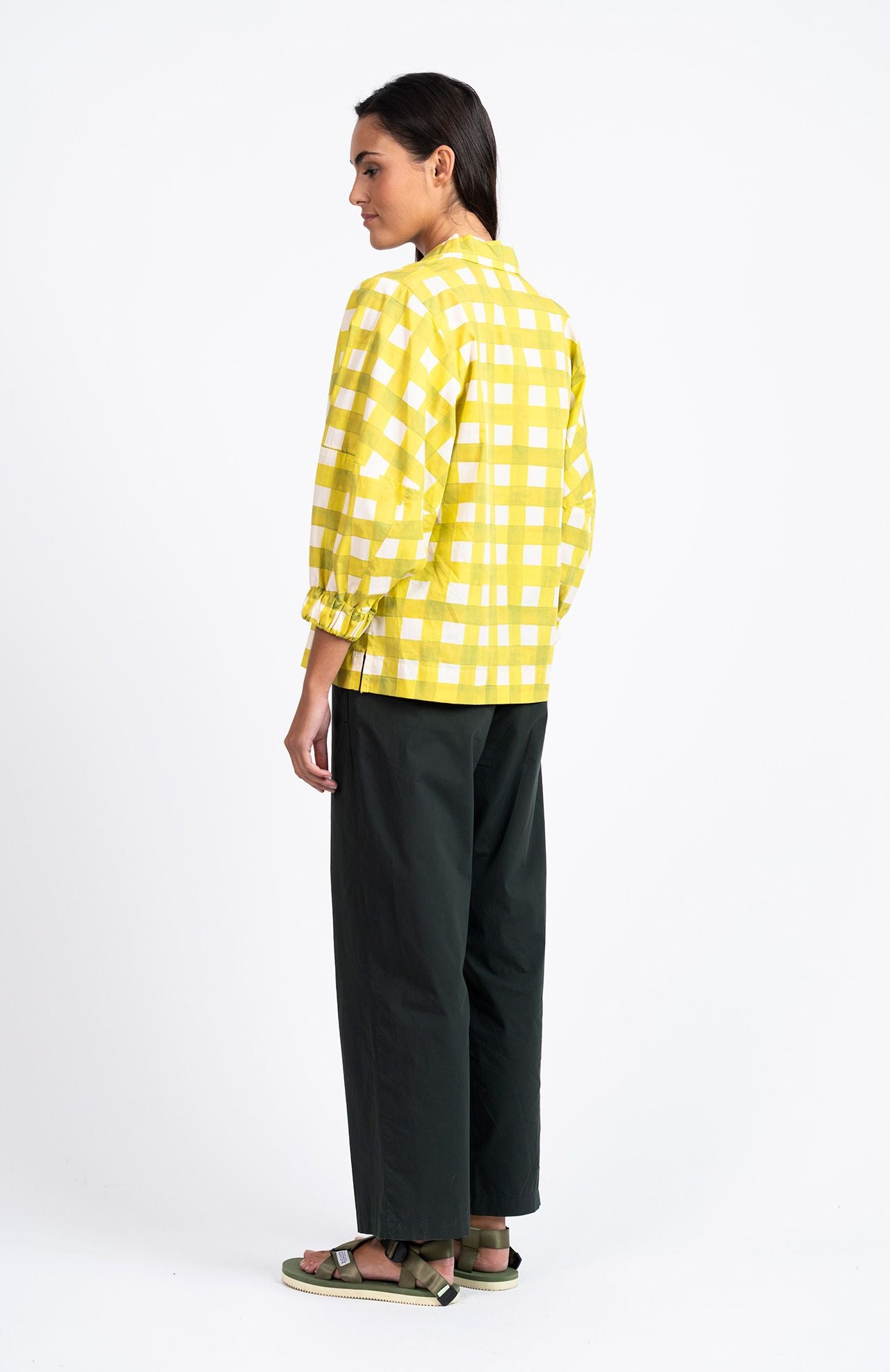 De Confya broek heeft een normale pasvorm met rechte pijpen die tot boven de enkel komen. Ze is gemaakt van biologische poplin katoen, heeft een elastische tailleband en zijzakkenf. Combineert mooi met de bijpassende Elke blouse.