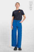 Deze knalblauwe broek voegt stijl toe aan elke outfit. Gemaakt van gerecycled katoen, is hij een duurzame en veelzijdige optie voor dagelijks gebruik. Combineer met de bijpassende longsleeves in streepjesmotief van Loreak Mendian.