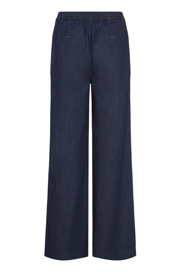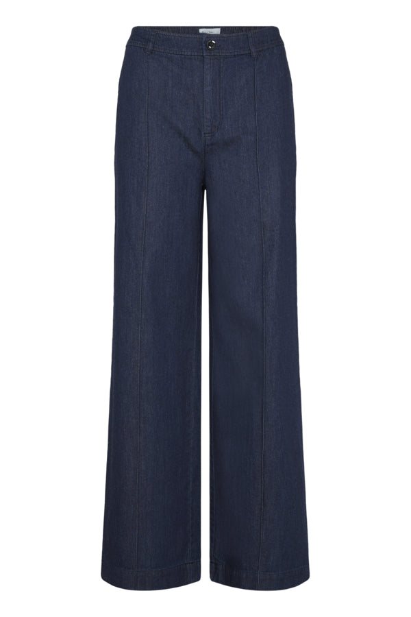 Een donkere jeans maar eentje in een niet te dikke denim stof. Ze zit comfortabel dankzij de elastische tailleband achteraan. Op het voorbeen is er een verticale naad. Verder heeft deze jeans steekzakken, valse achterzakken en riemlussen. Combineer met de Sassi blouse voor een denim on denim look. Instant klasse!
