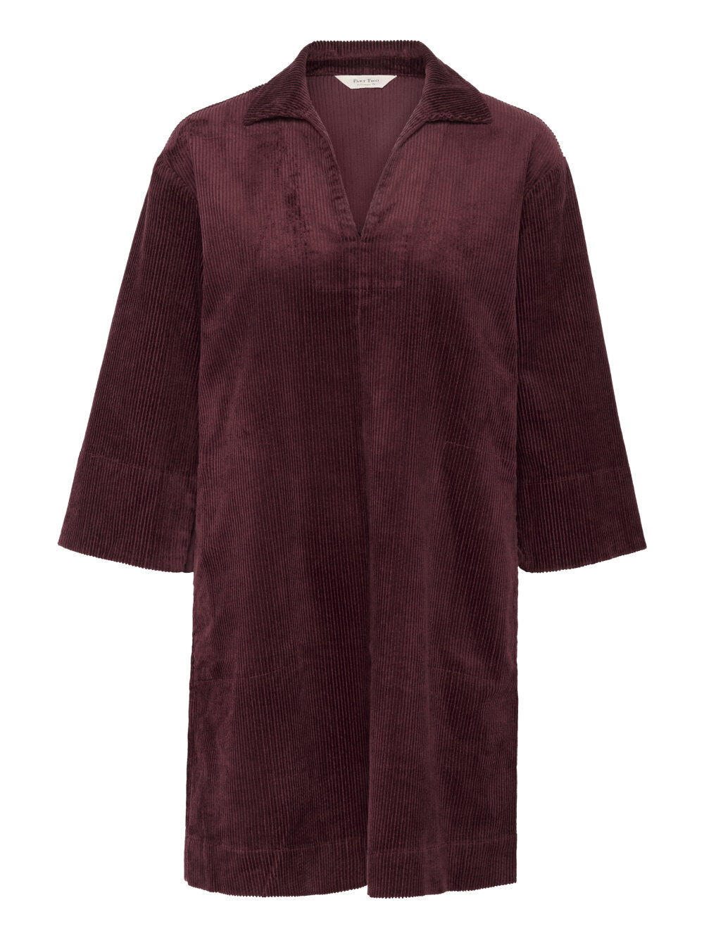 Een toppertje, deze Sharri jurk. Een toffe fit, zachte ribfluwelen stof, wijde 3/4 mouwen en praktische steekzakken.
