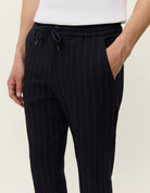 De taps toelopende pijpen zorgen voor een moderne, verfijnde pasvorm, terwijl de elastische taille met trekkoord garant staat voor comfort en flexibiliteit. De steekzakken geven de broek een nonchalante, maar verzorgde uitstraling — perfect voor zowel ontspannen weekends als stijlvolle momenten onderweg.