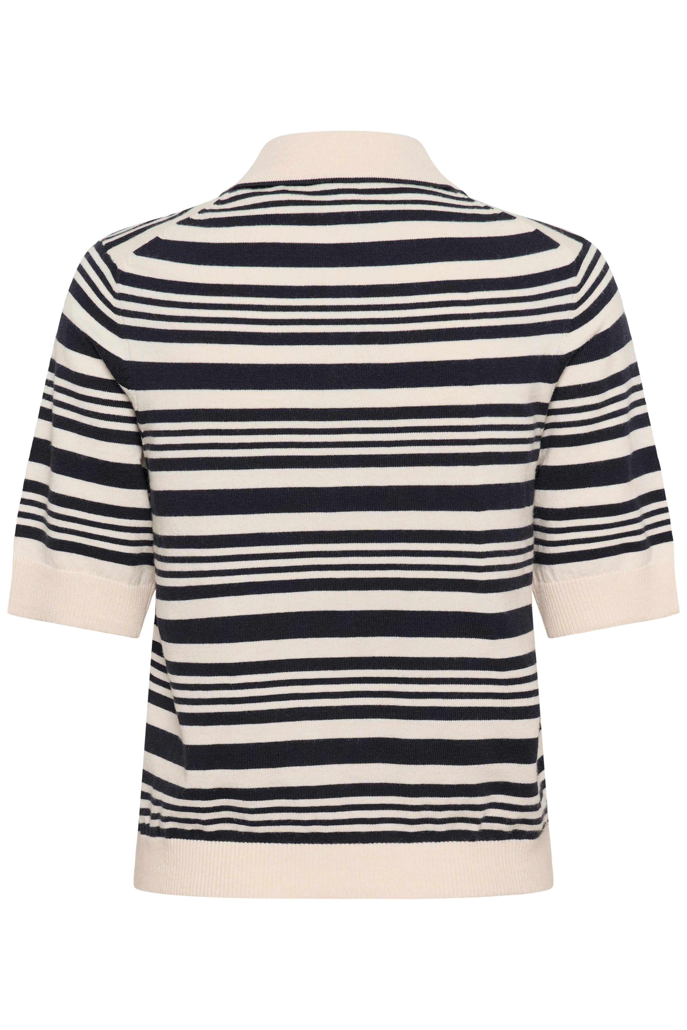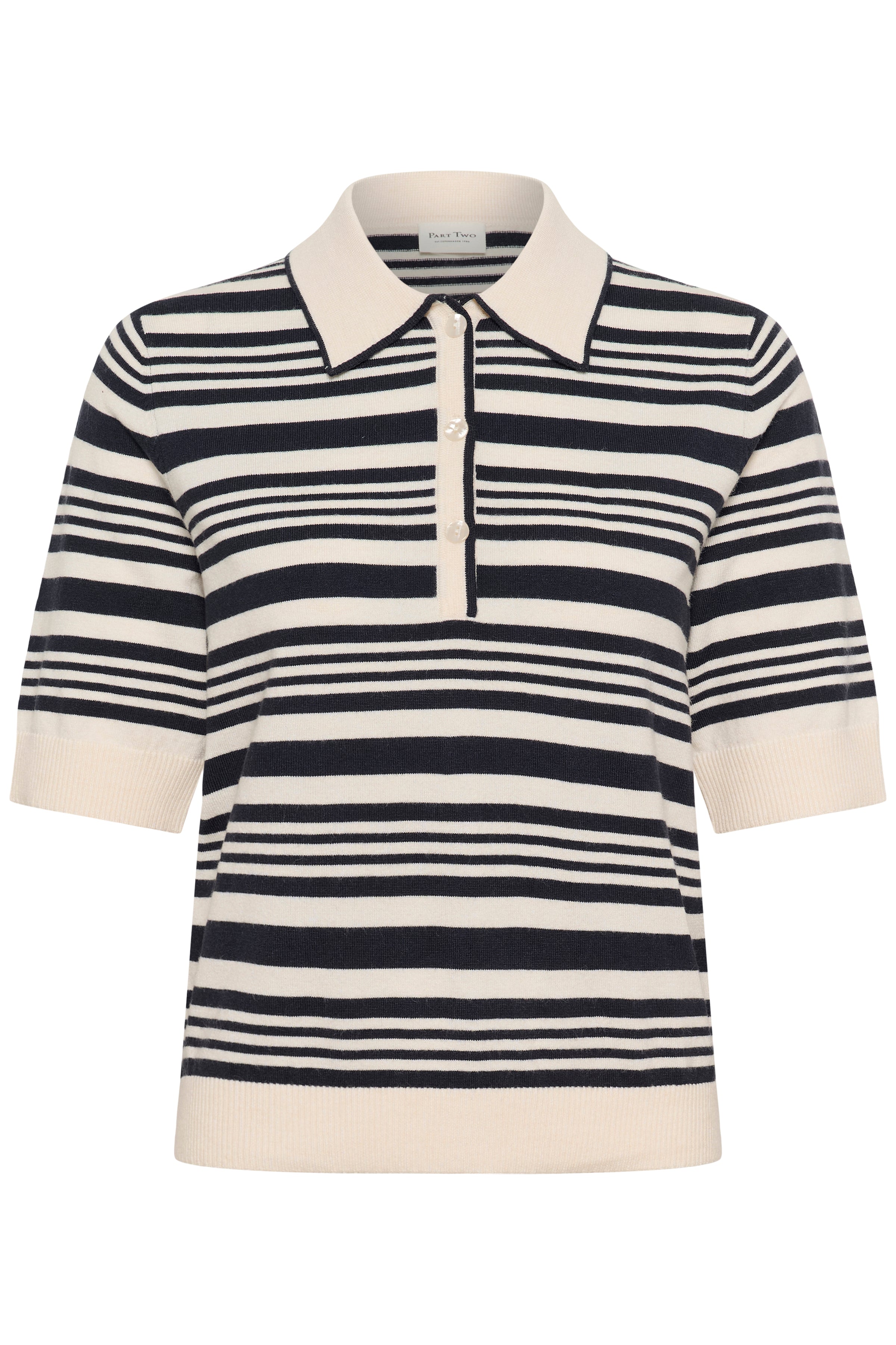 Een super zacht polotruitje met korte mouw en blauwe strepen.