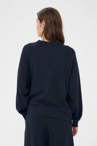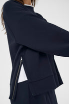 Zola sweater in dark navy met ritsjes aan de zijkant. Zacht en comfortabel.