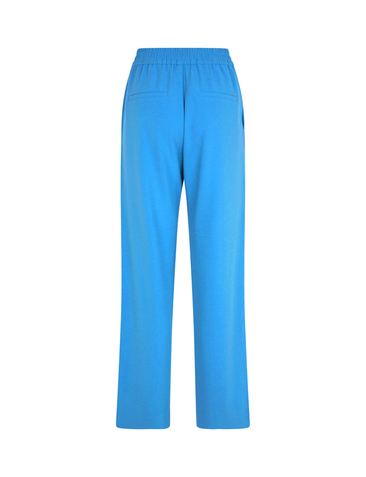 Soepelvallend broekje met een elastische tailleband en in een blauwe kleur. De elastische tailleband en de 2 steekzakken zorgen voor extra comfort.