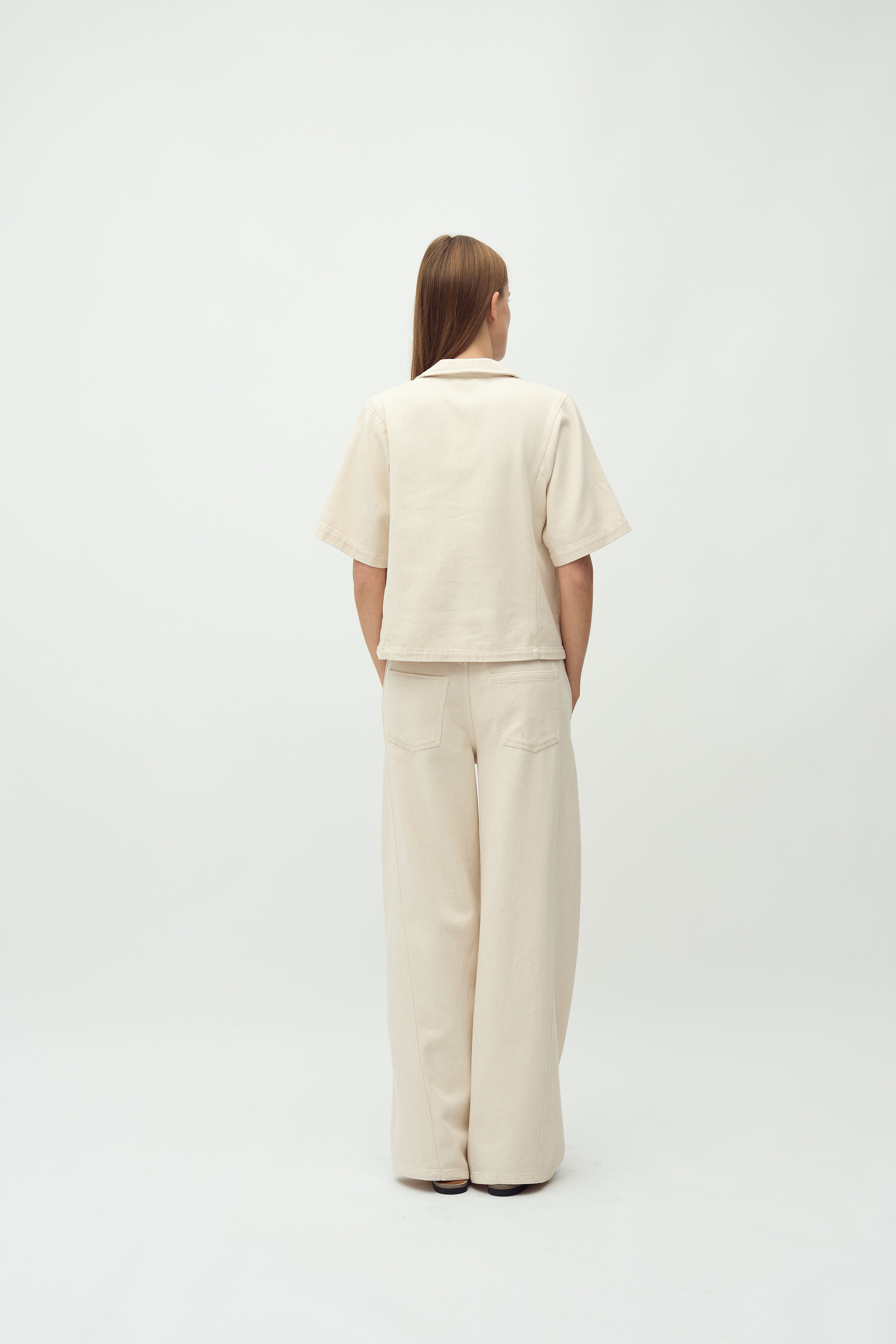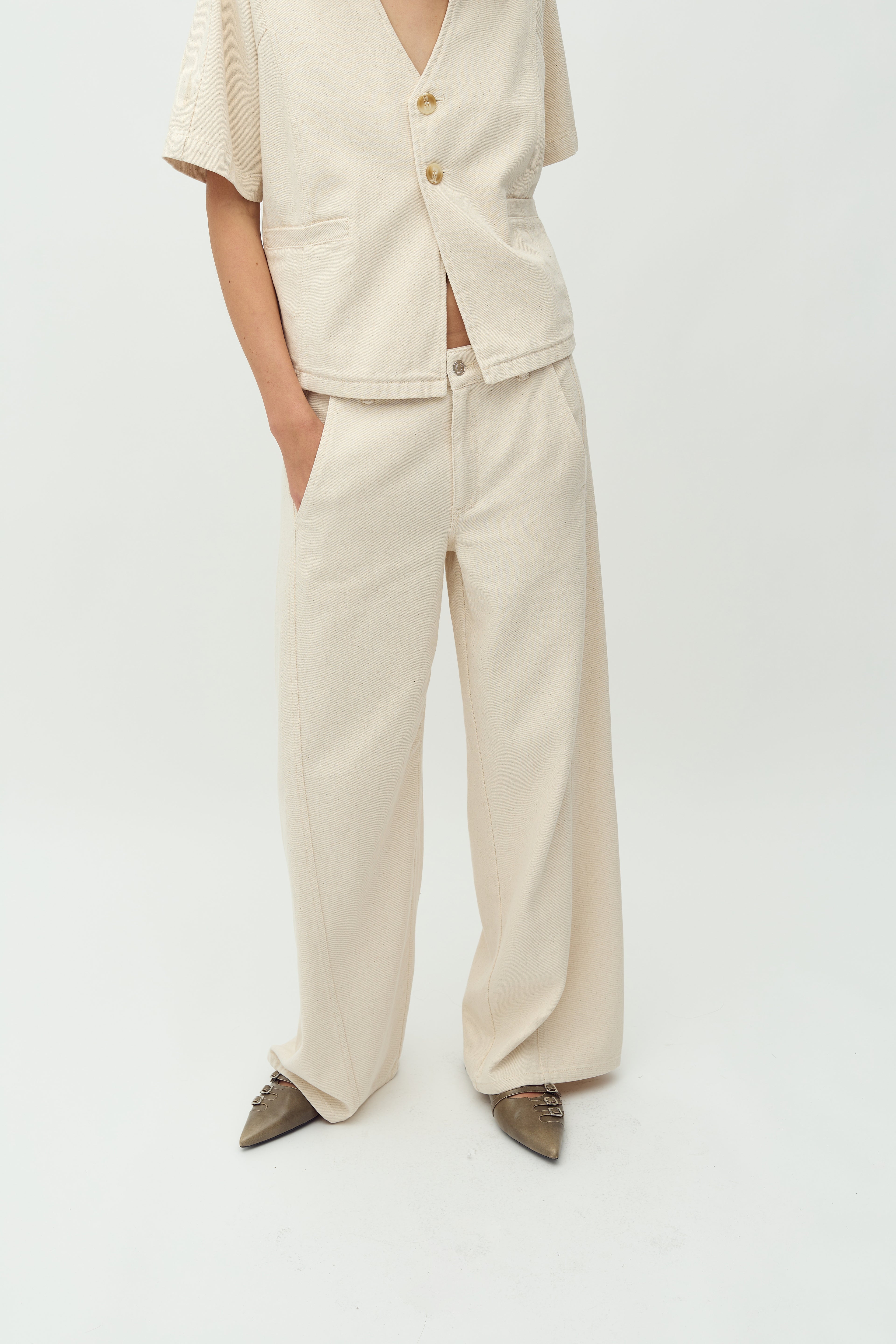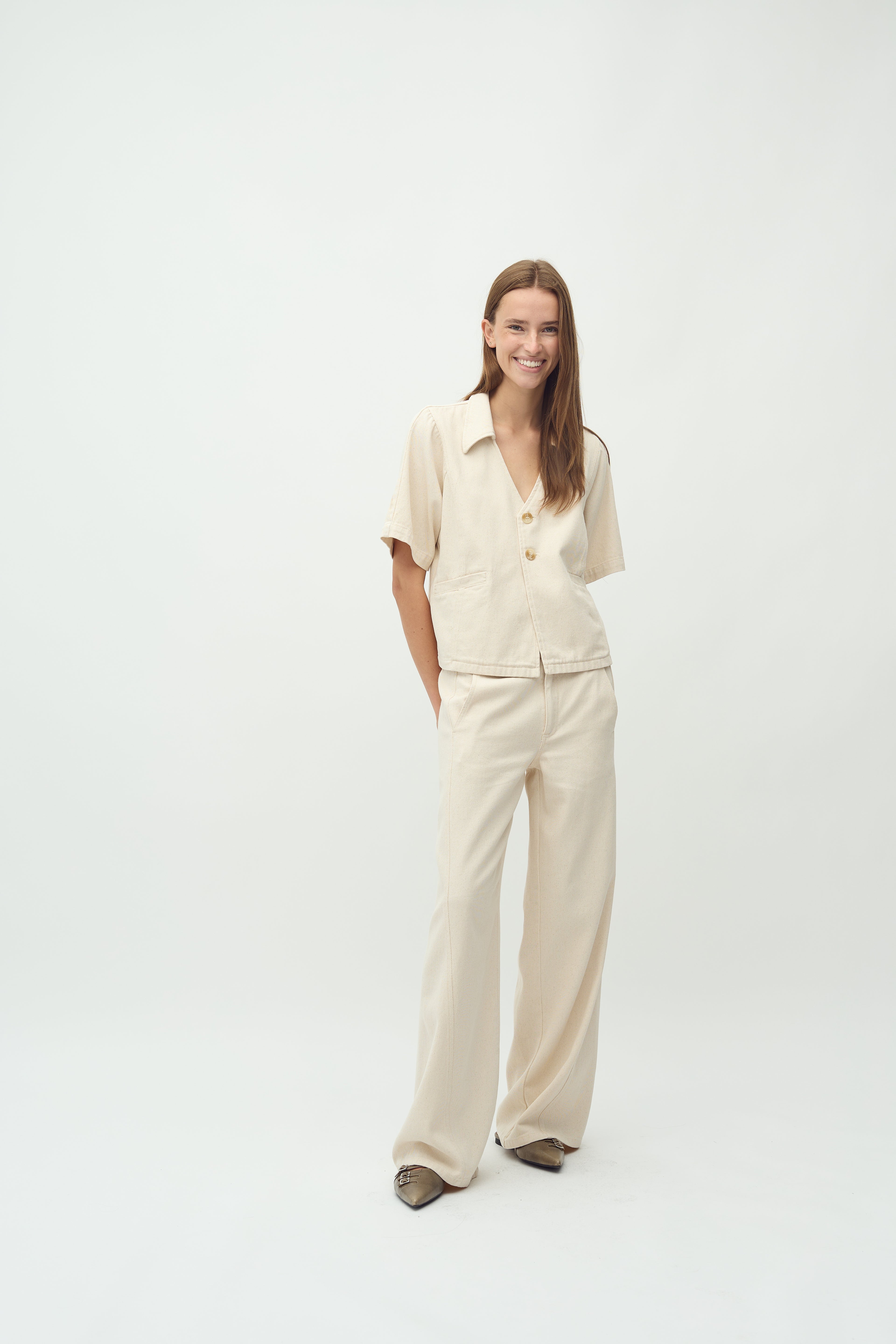 Deze wide-legbroek is een cool lente/zomermodel dat met alles te combineren valt. Hij heeft 2 steekzakken vooraan en 2 zakken achteraan. Perfect te dragen op elke gelegenheid.