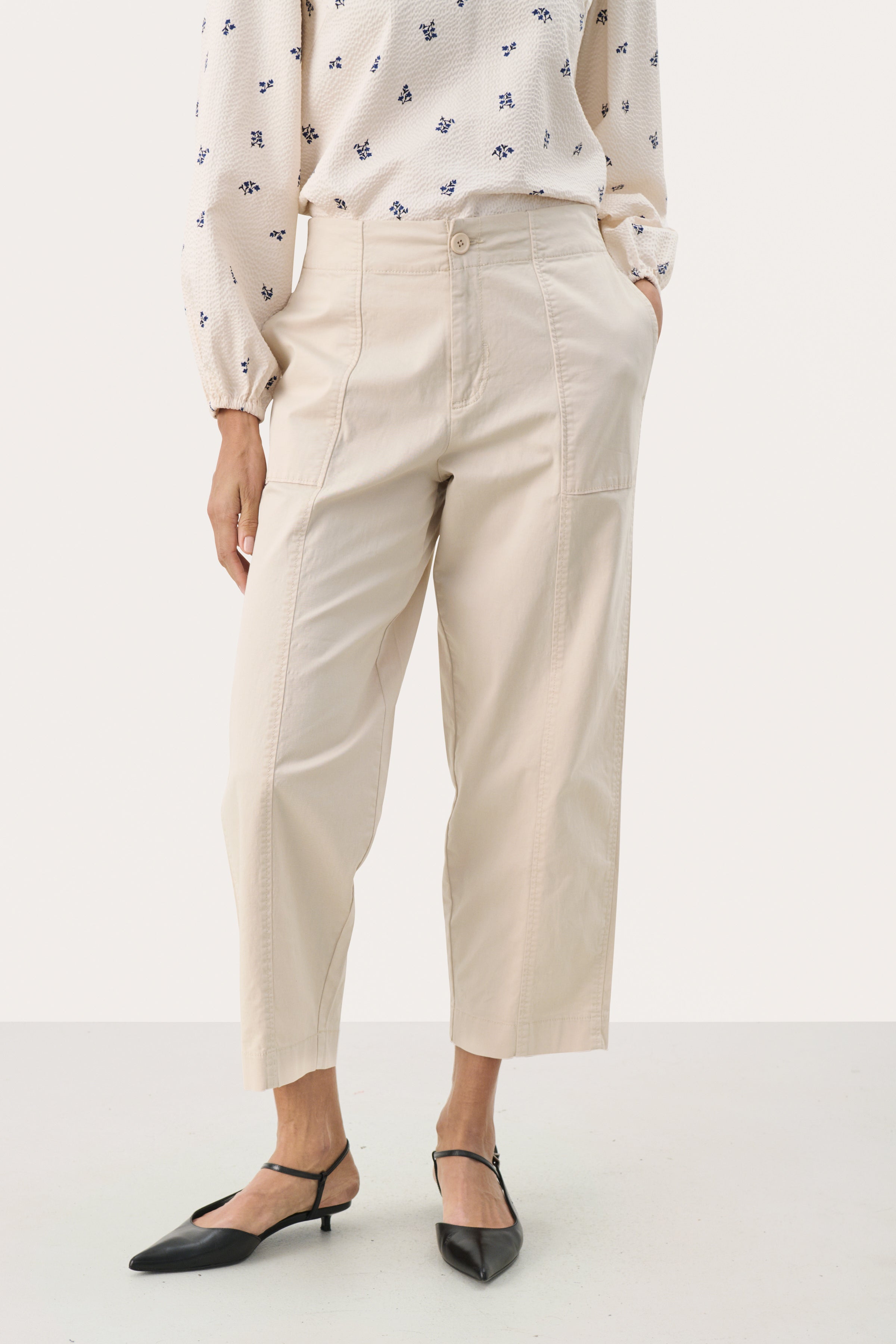 Het Nettabroekje is een luchtig ecru zomerbroekje met een naad en steekzakken vooraan.