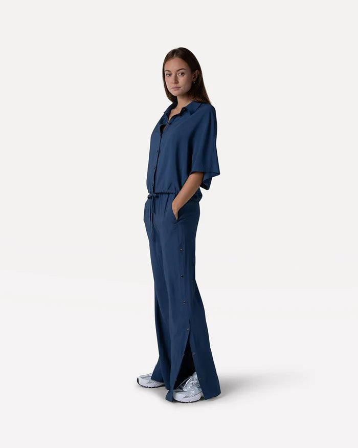 Een broek met dat tikkeltje extra, dat is de Ollie Pants. De broek heeft rechte pijpen en een middelhoge tot hoge taille voor een flatterende pasvorm. Een verstelbaar koord bij de tailleband zorgt voor een aangepaste, comfortabele pasvorm, terwijl de rekbare tailleband zorgt voor bewegingsvrijheid. Een enkele welt pocket voegt een praktisch tintje toe en de zachte rayonmix zorgt voor een glad, luxueus gevoel, waardoor deze broek perfect is voor zowel casual als verfijnde looks. De drukknopen zorgen voor dat extraatje. Probeer de broek te dragen met ons het Rila hemdje.