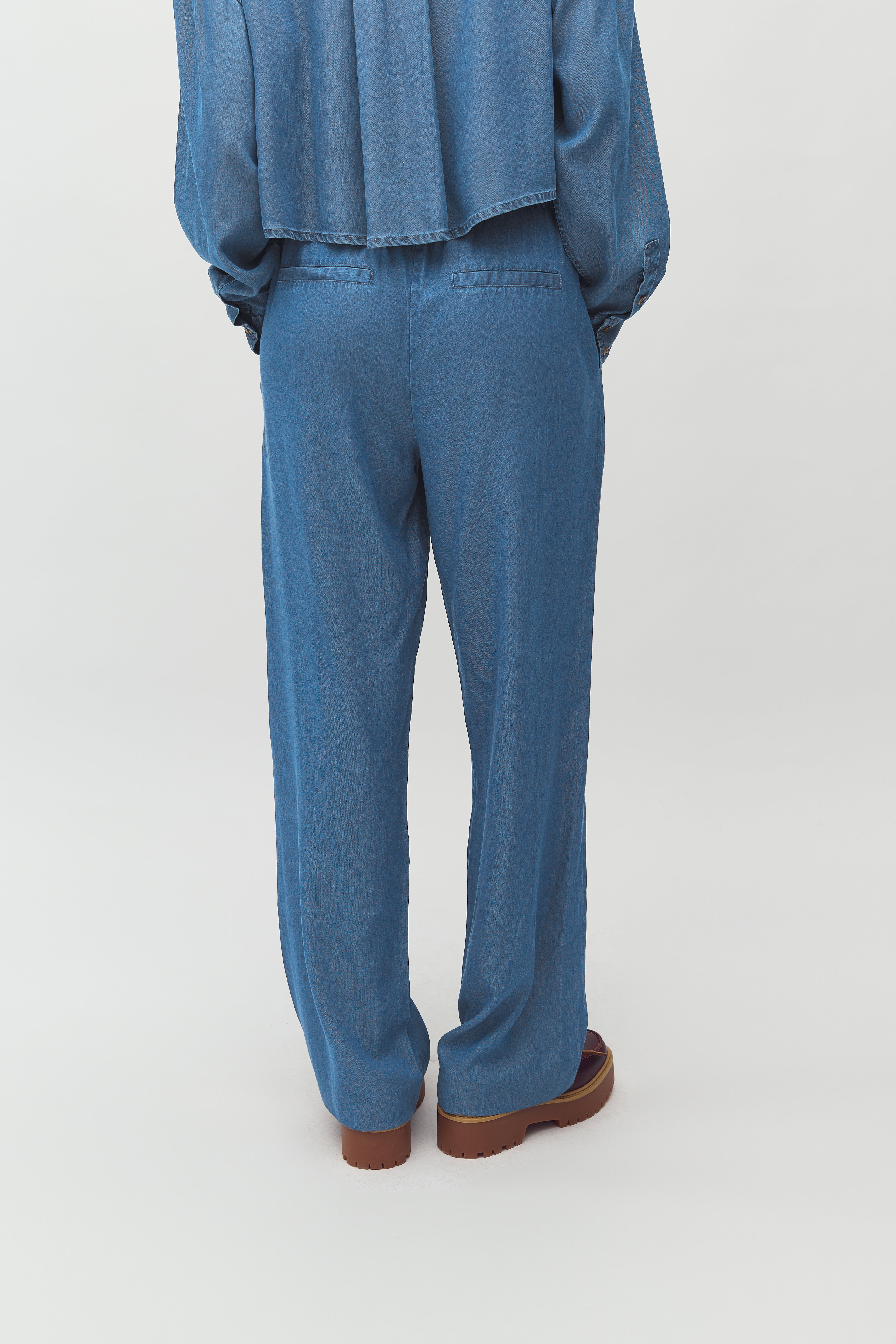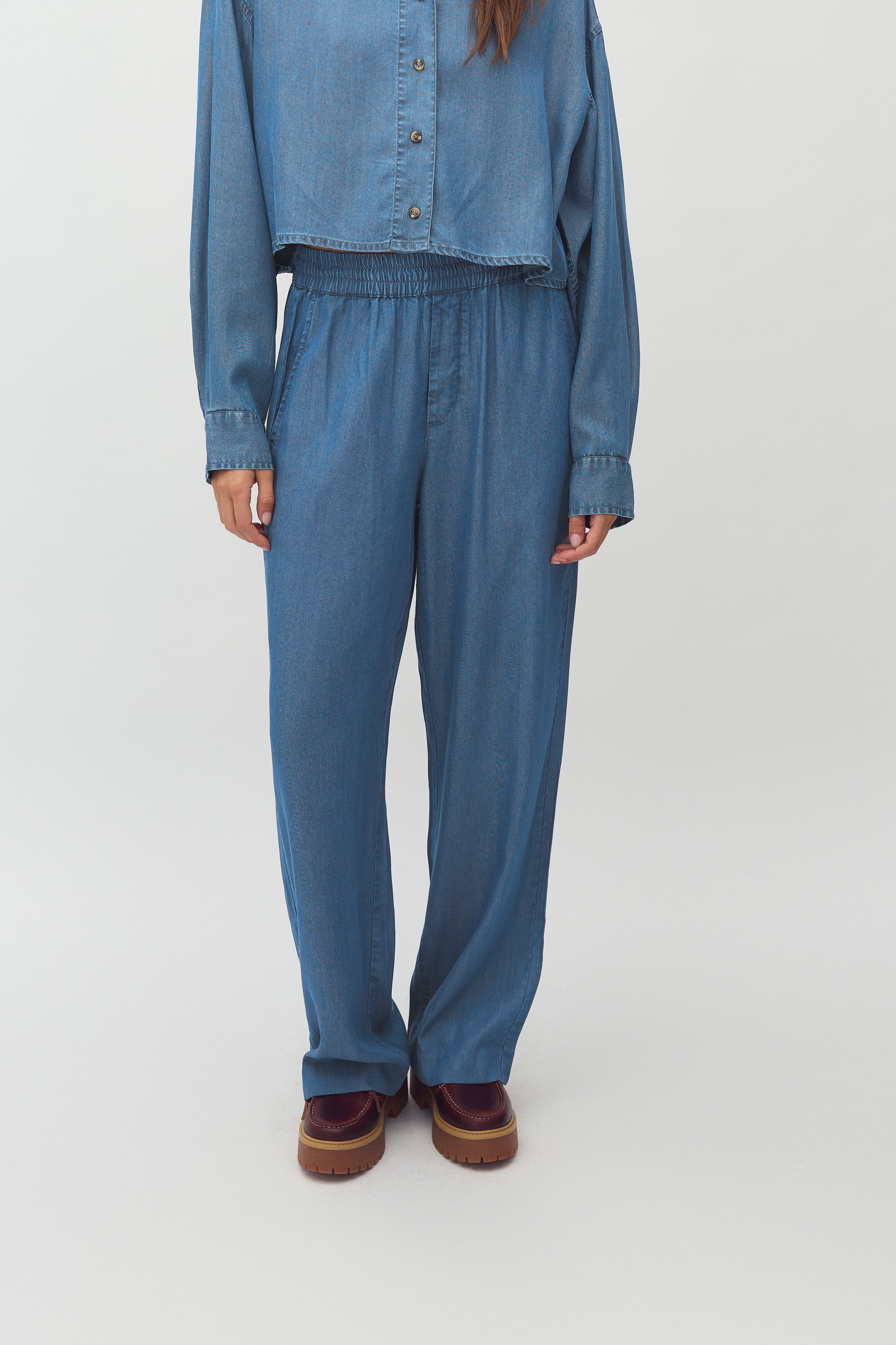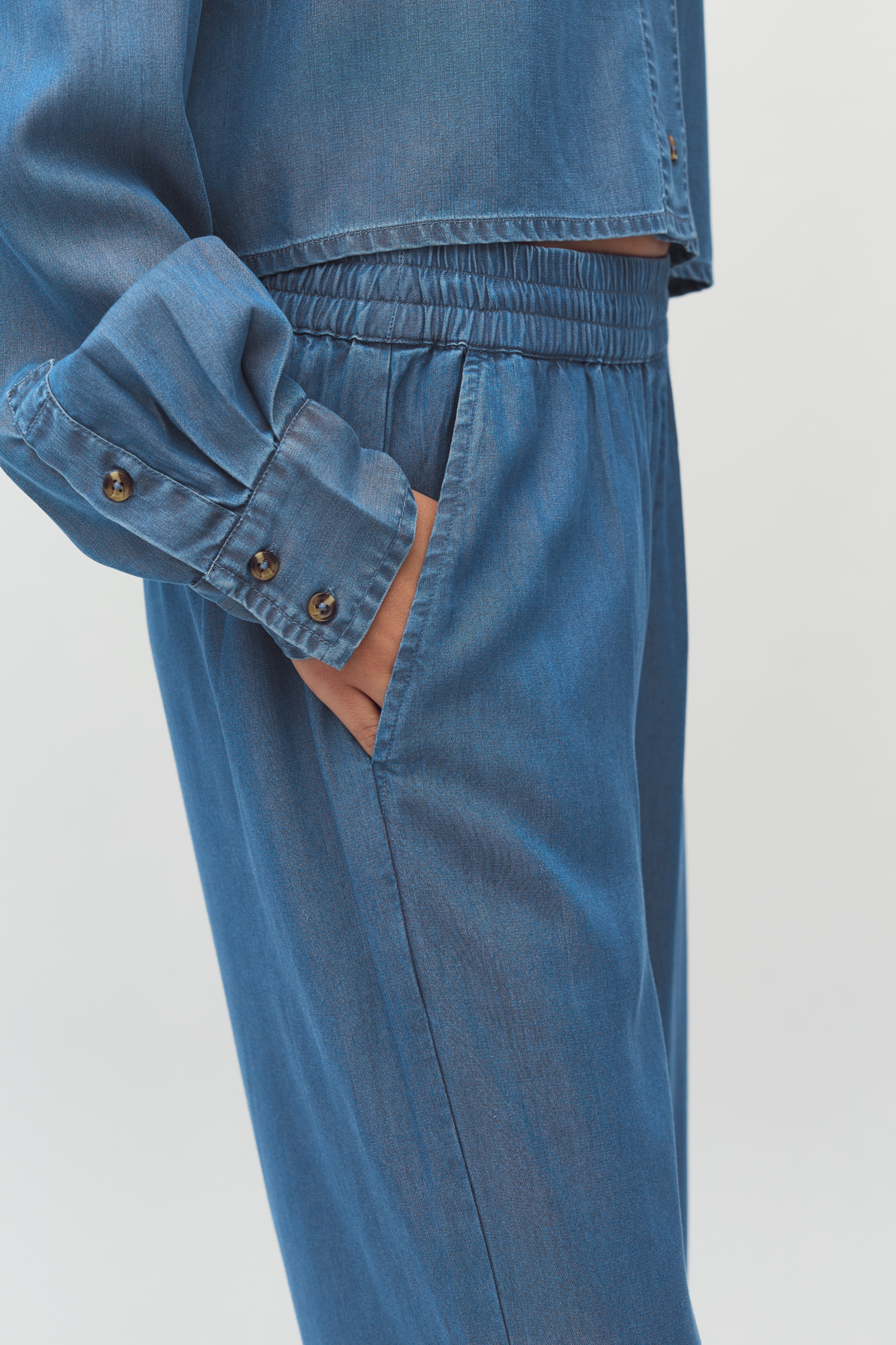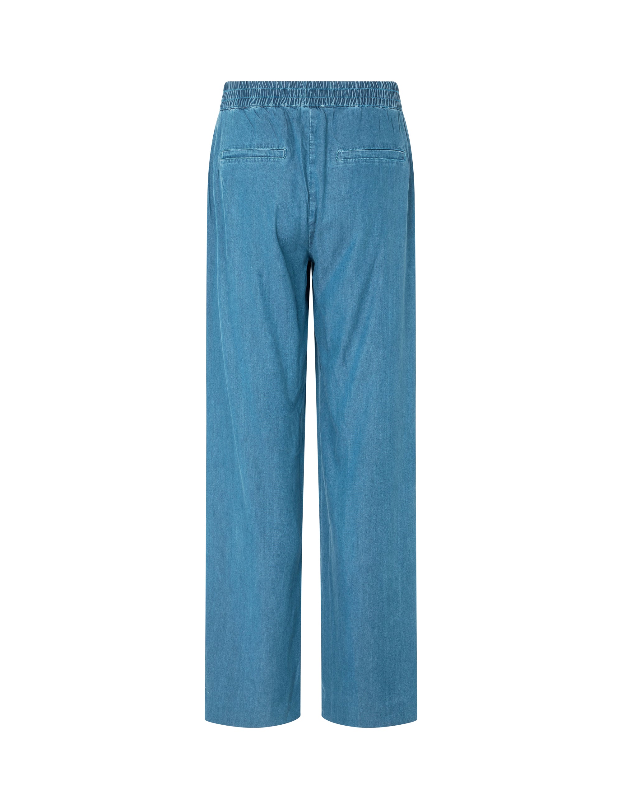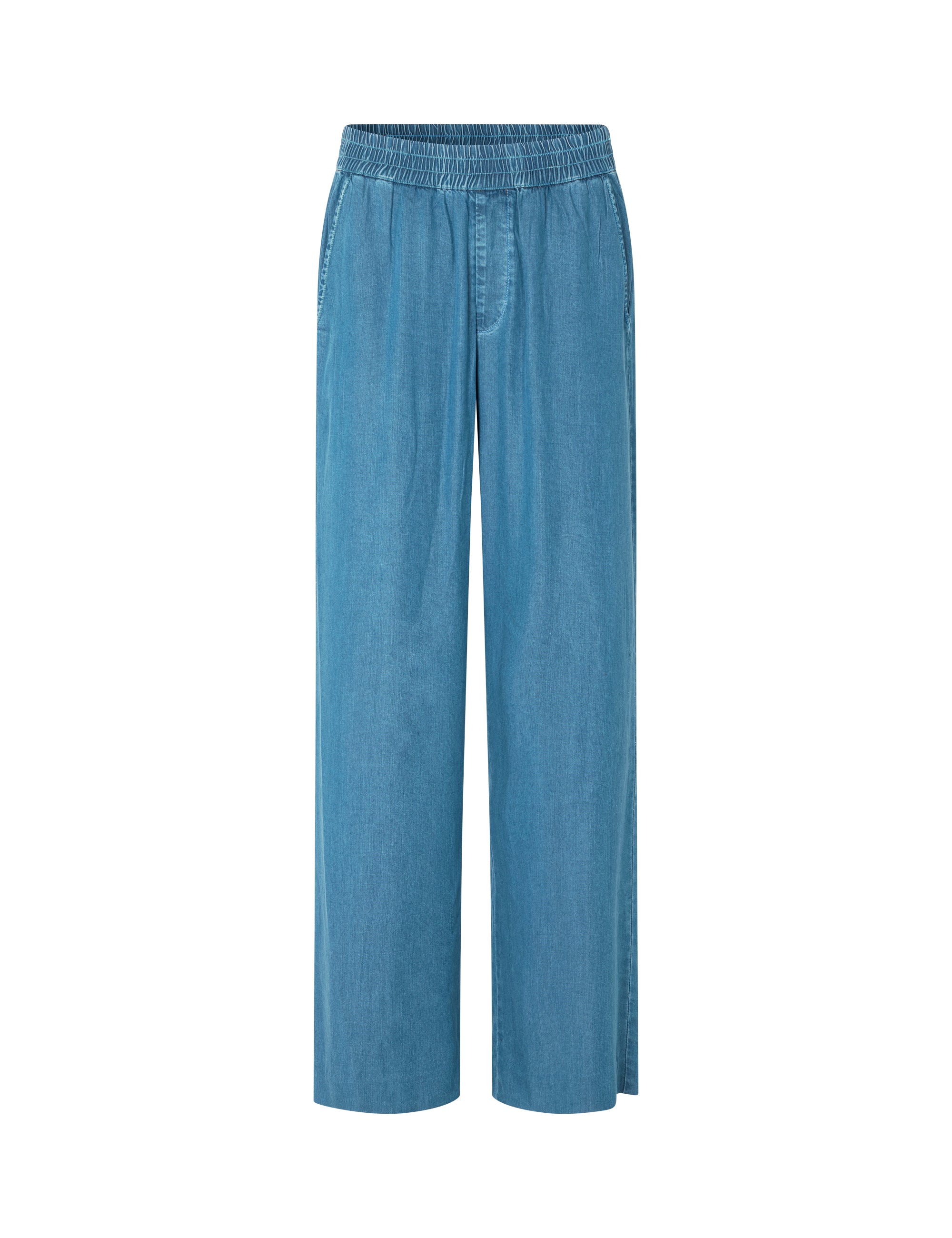 Soepelvallend broekje met een elastische tailleband en in een toffe denimstof. De elastische tailleband en de mix van viscose en tencel zorgen voor extra comfort.