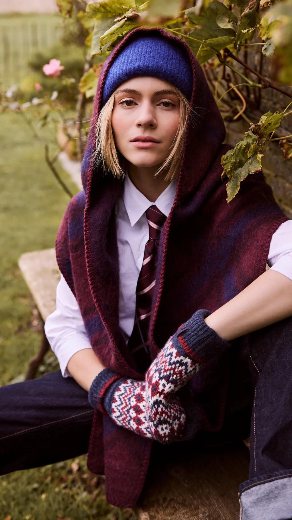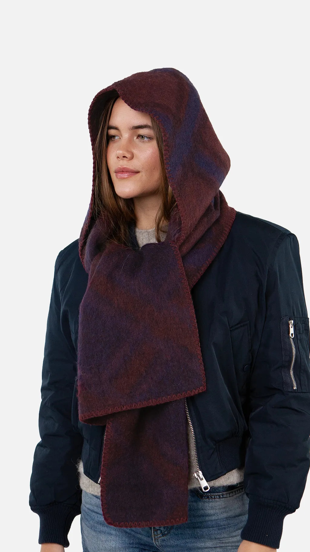 Deze Halberra is een sjaal met capuchon in een mooi ruitpatroon. De mix van bordeaux- en blauwtinten creëren een coole look. Lekker comfortabel, praktisch en vooral warm. voor dames