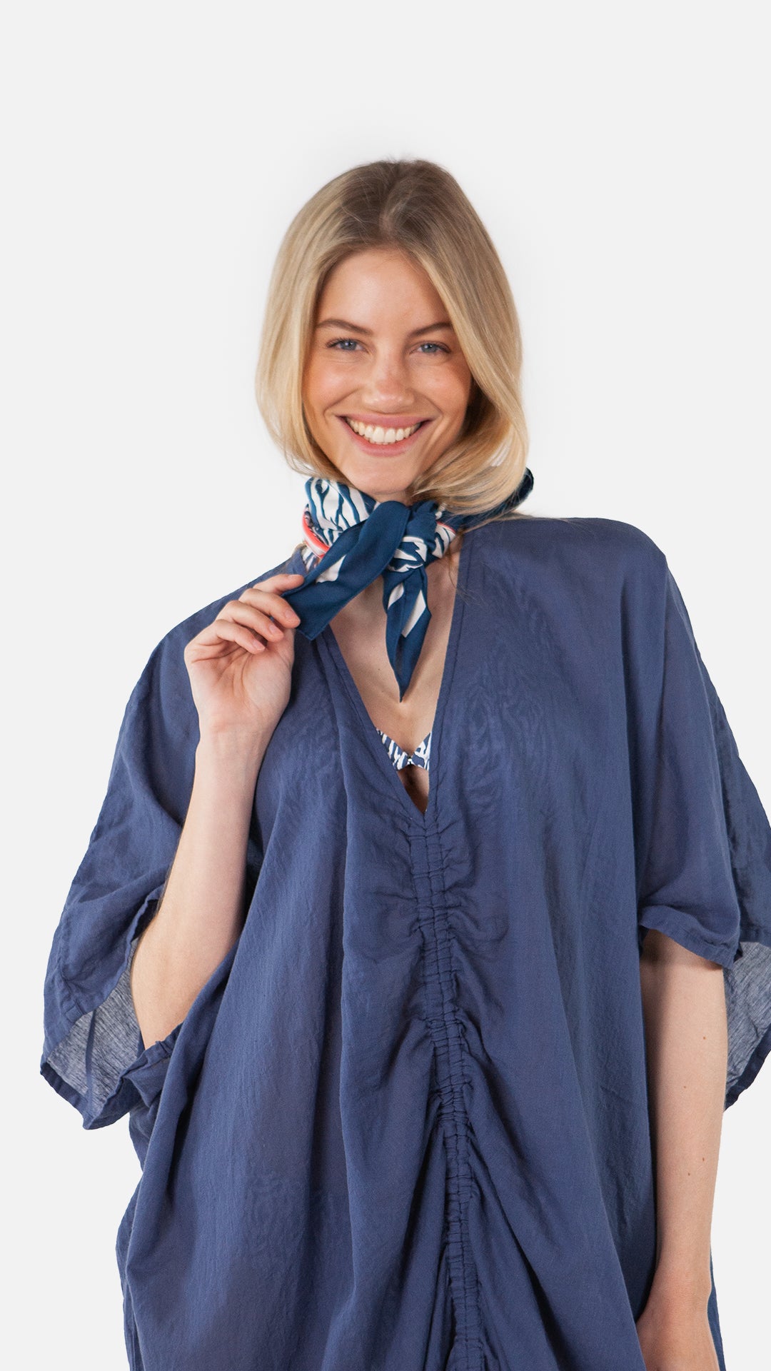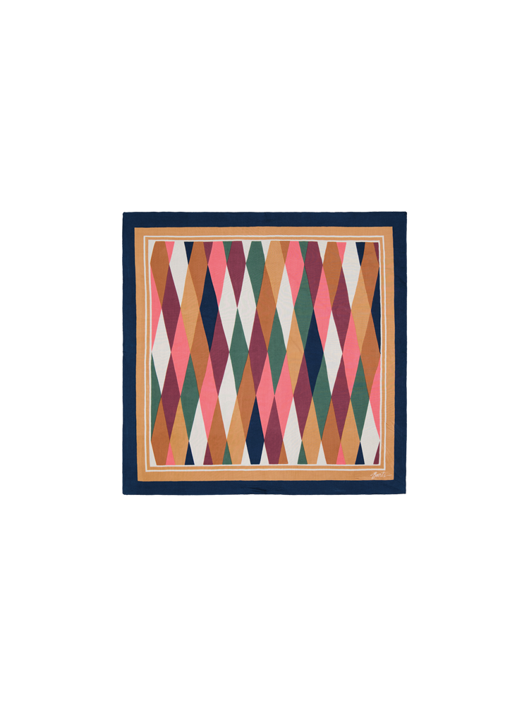 Vierkant sjaaltje in verschillende motiefjes om je outfit trendy af te werken.