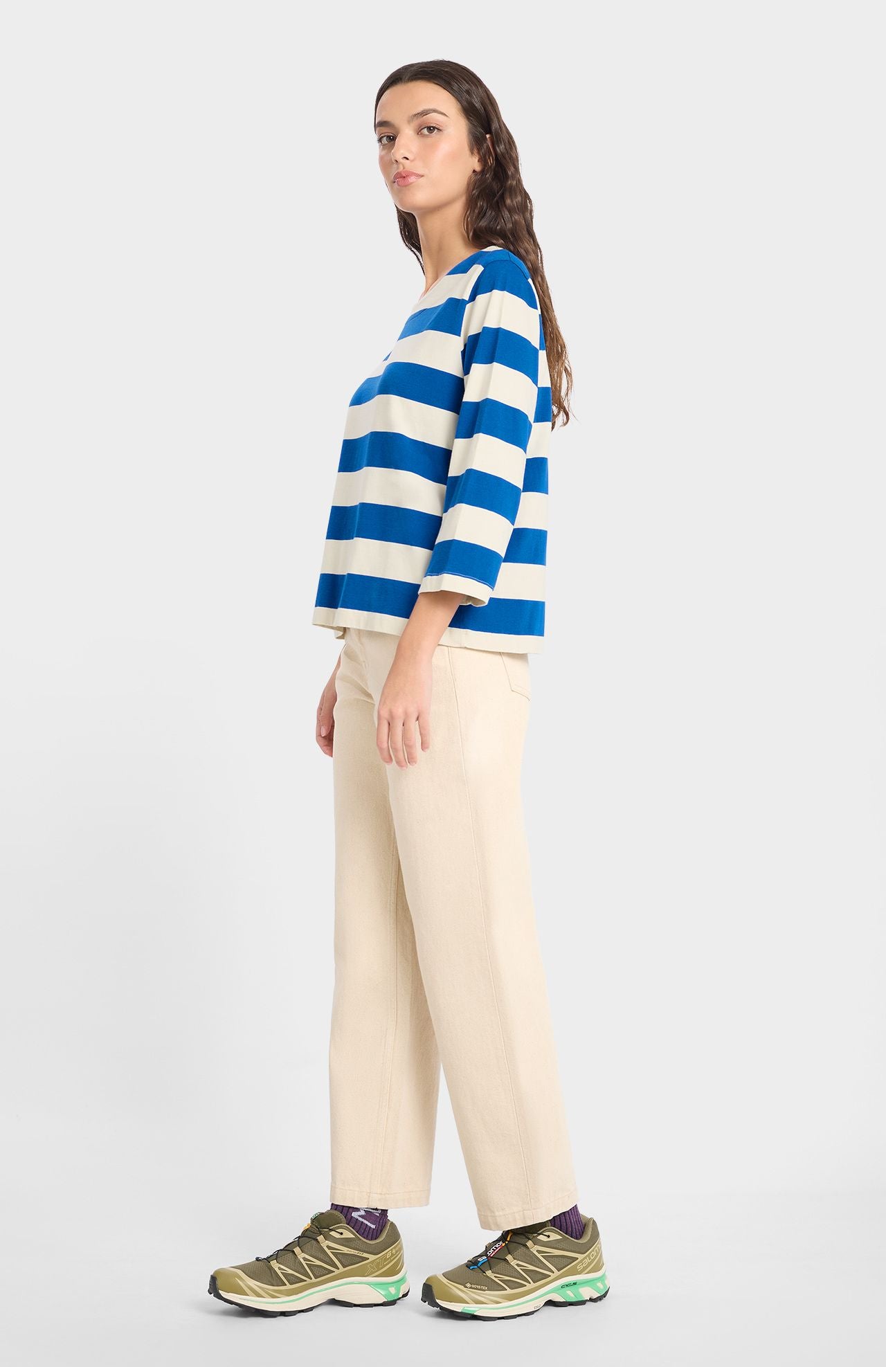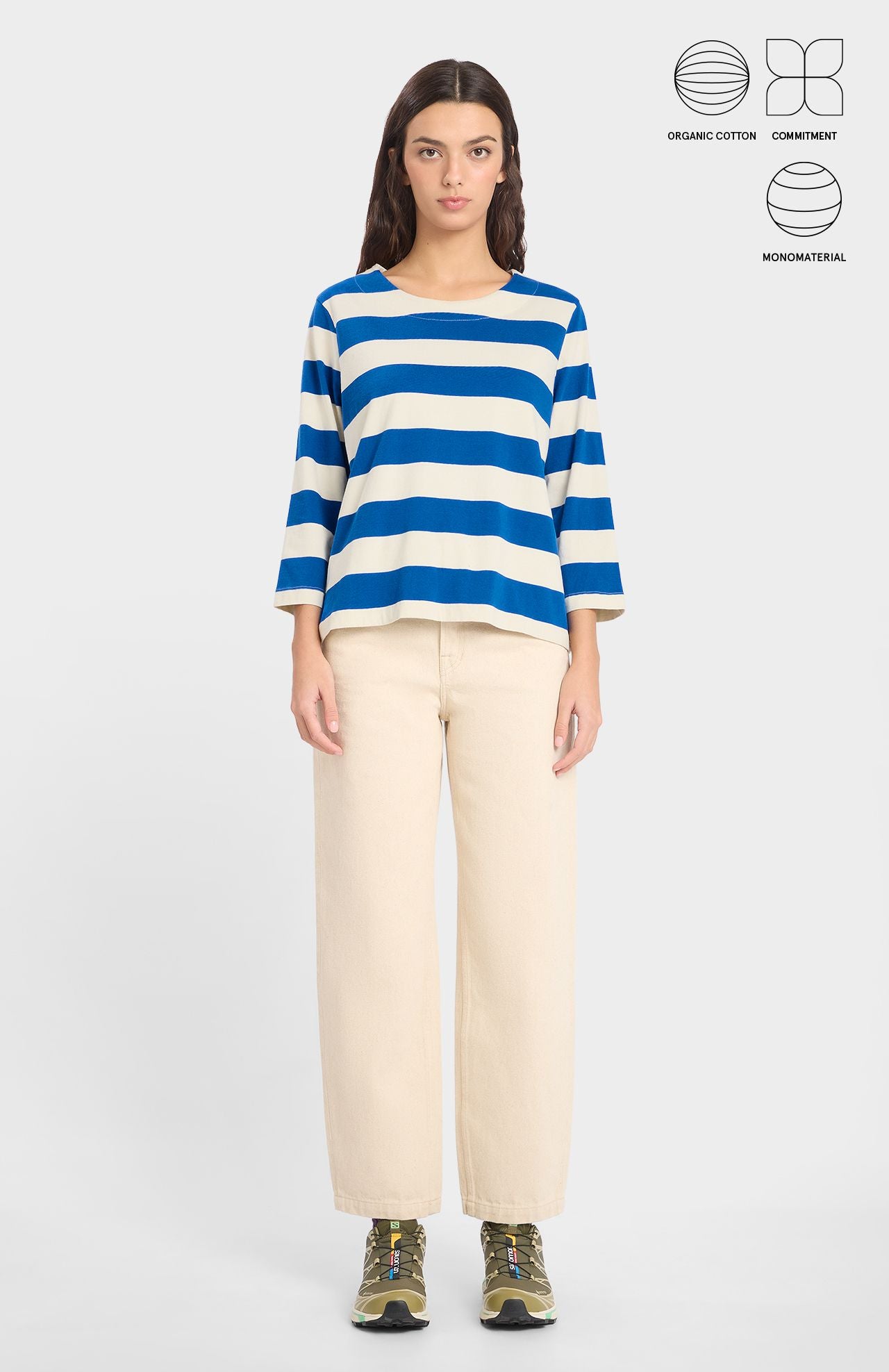Een tijdloze essential. De strepenprint, lange mouwen en boothals maken dit T-shirt tot een klassieker die altijd trendy is.