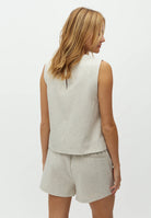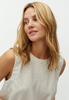 De Tytus top van MbyM is dé perfecte basic voor warme dagen. Deze mouwloze top met ronde hals is uitgevoerd in een ademende linnen kwaliteit, waardoor hij heerlijk licht en comfortabel aanvoelt in de zomer. De zachte ecru tint geeft een frisse, natuurlijke uitstraling en maakt deze top eindeloos combineerbaar.