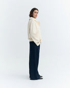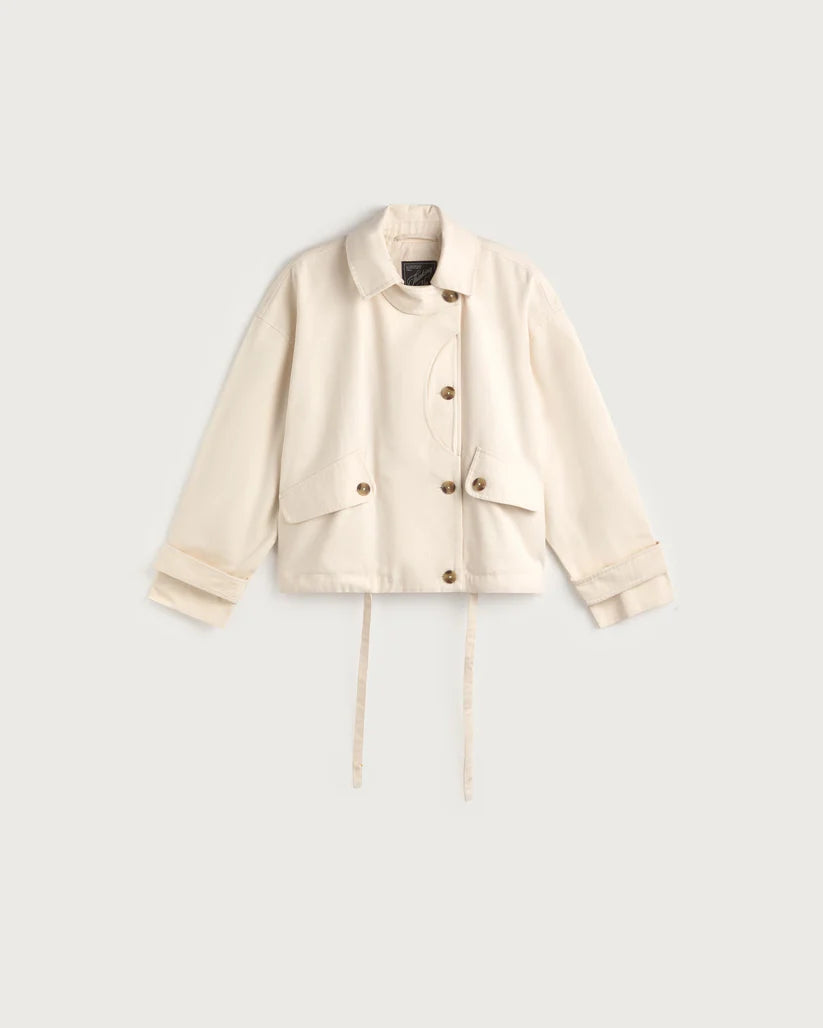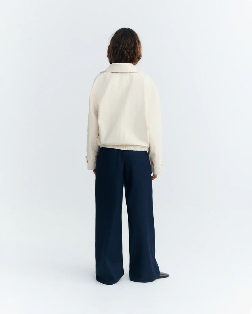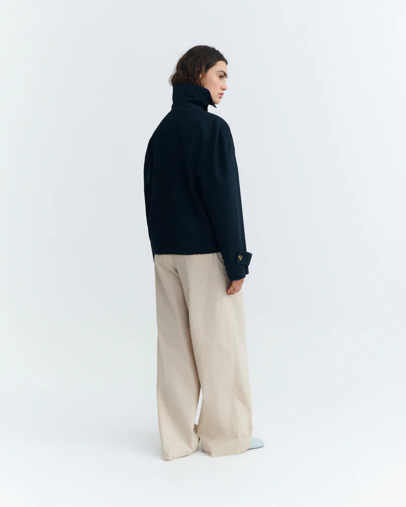 Dankzij de voering van biologisch katoen draagt de Norma jas comfortabel en ademend. Een duurzame keuze met een minimalistische esthetiek — precies wat je verwacht van Thinking Mu.