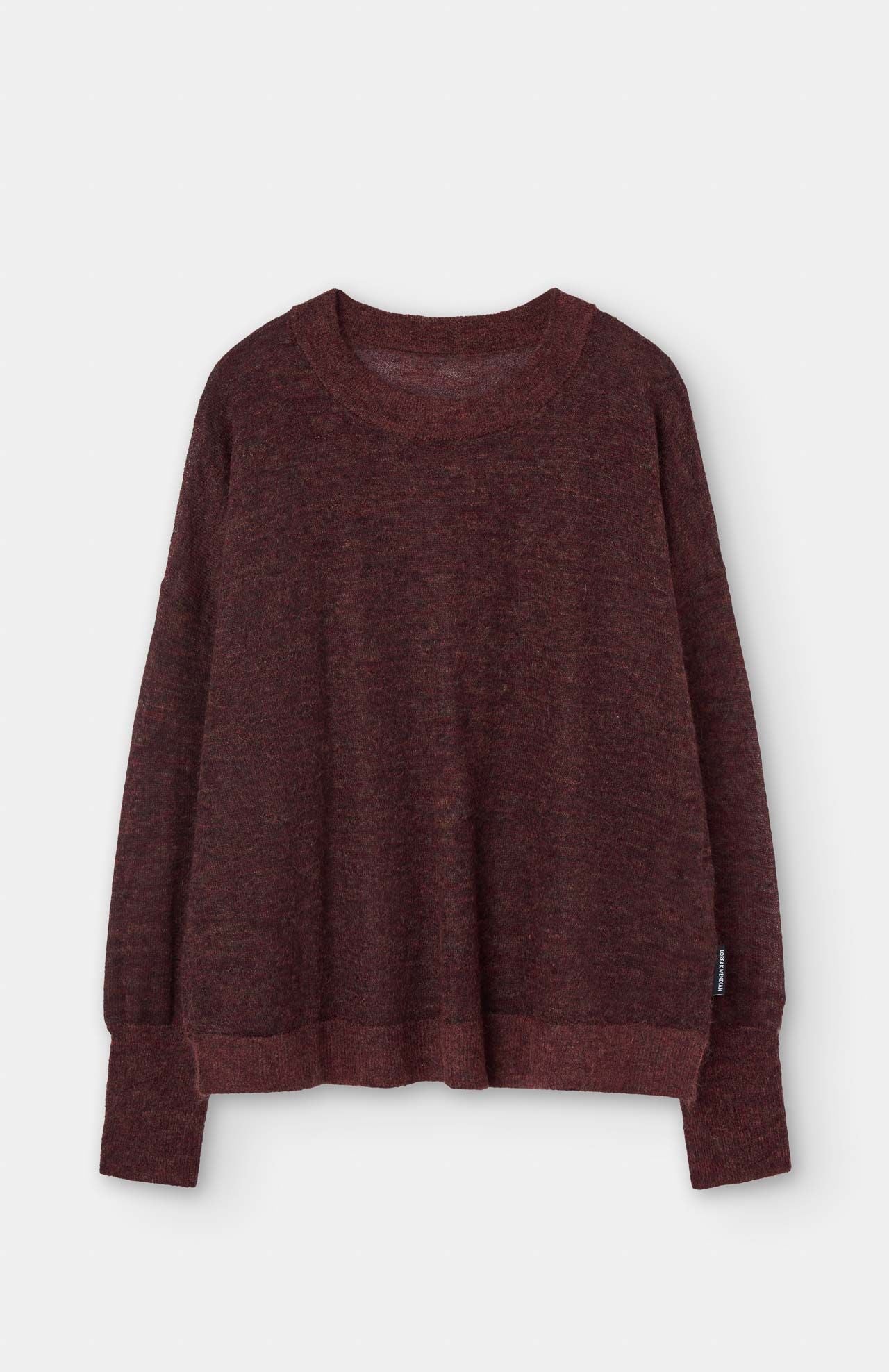 Draag een relaxte stijl met deze losvallende gebreide, bordeaux trui. De ronde hals en lange mouwen zorgen voor ongeëvenaard comfort, terwijl de zijsplitten een vleugje dynamiek toevoegen.