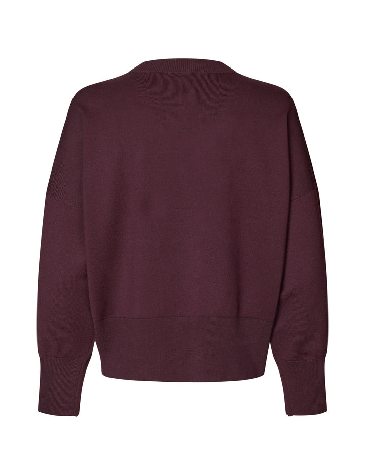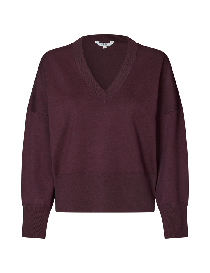 De Gillian is een dun bruin herfsttruitje met losse fit, V-hals en lange mouwen.