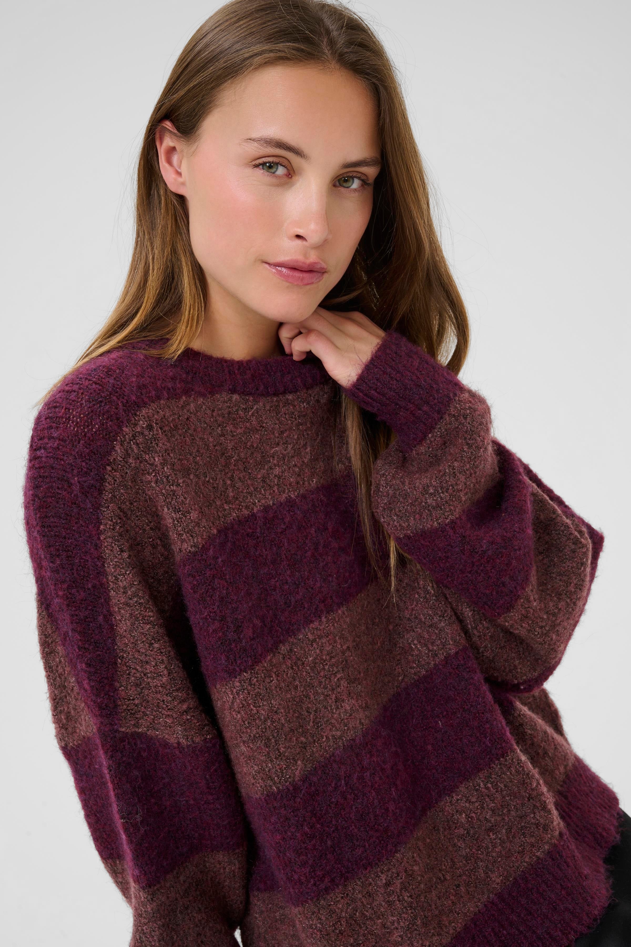 De Kimmy trui is lekker zacht, prikt niet en past perfect op de Baela broek of rok. Hij heeft een vlotte fit en wijde mouwen.
